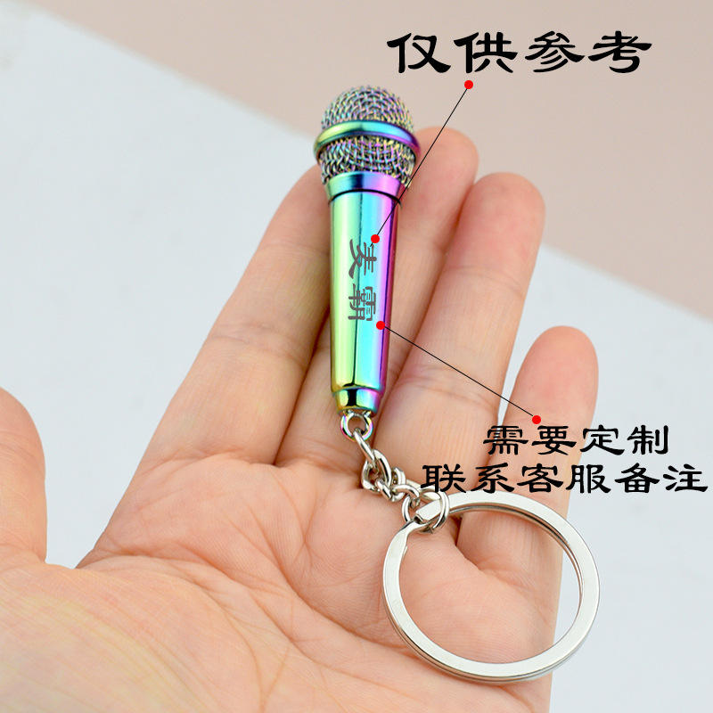 Porte-clés microphone en alliage de zinc, mini-figurine de souvenirs de spectacle, cadeau gravé pour programme de performance, vente en gros transfrontalière