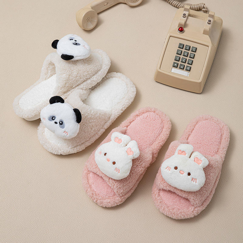 Transfrontalier pour Amazon dessin animé à bout ouvert hiver pour pantoufles femmes Ins Style maison couleur-bloc mignon peluche mode filles en gros