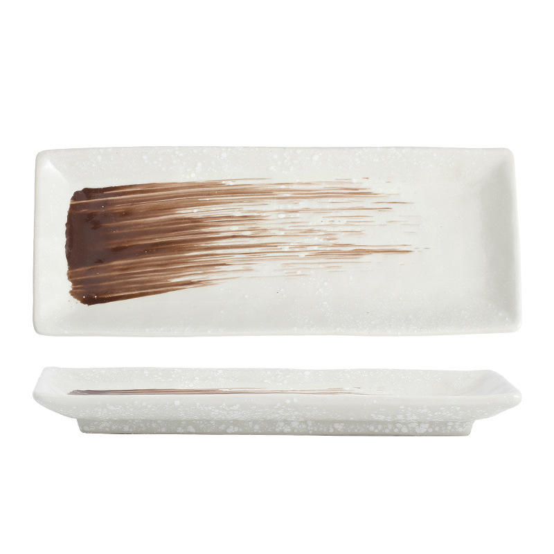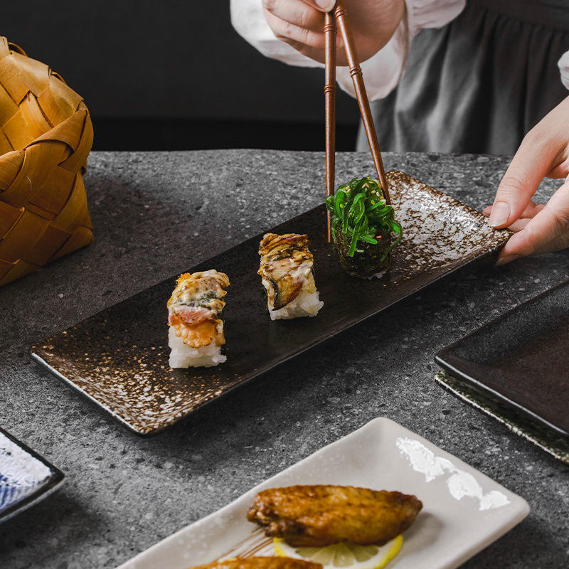 Assiette rectangulaire en céramique de style japonais minimaliste pour sushis, desserts et poisson, créative, pour la maison, compatible micro-ondes, pour l'export.