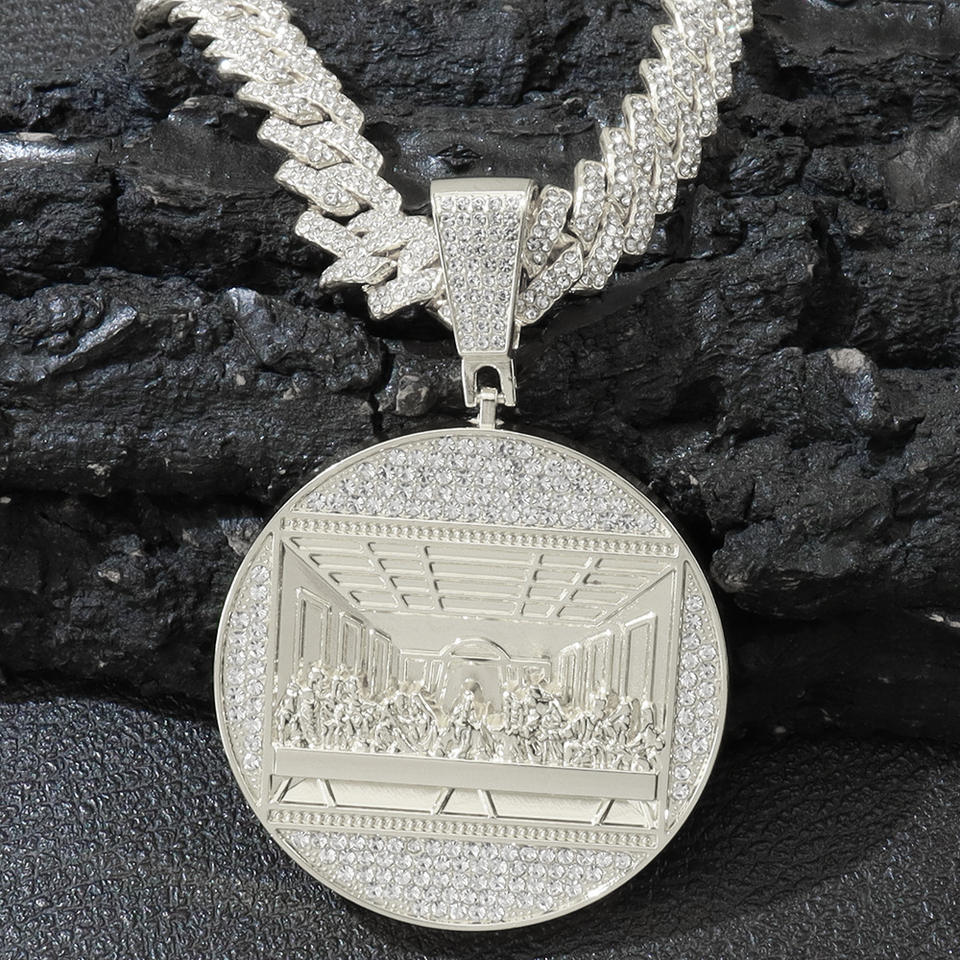 Cross-Border for SHEIN 3D Round Pendant Rhombus Cuban Chain Necklace Hot-Selling Hip-Hop Style with Pearl for Children
