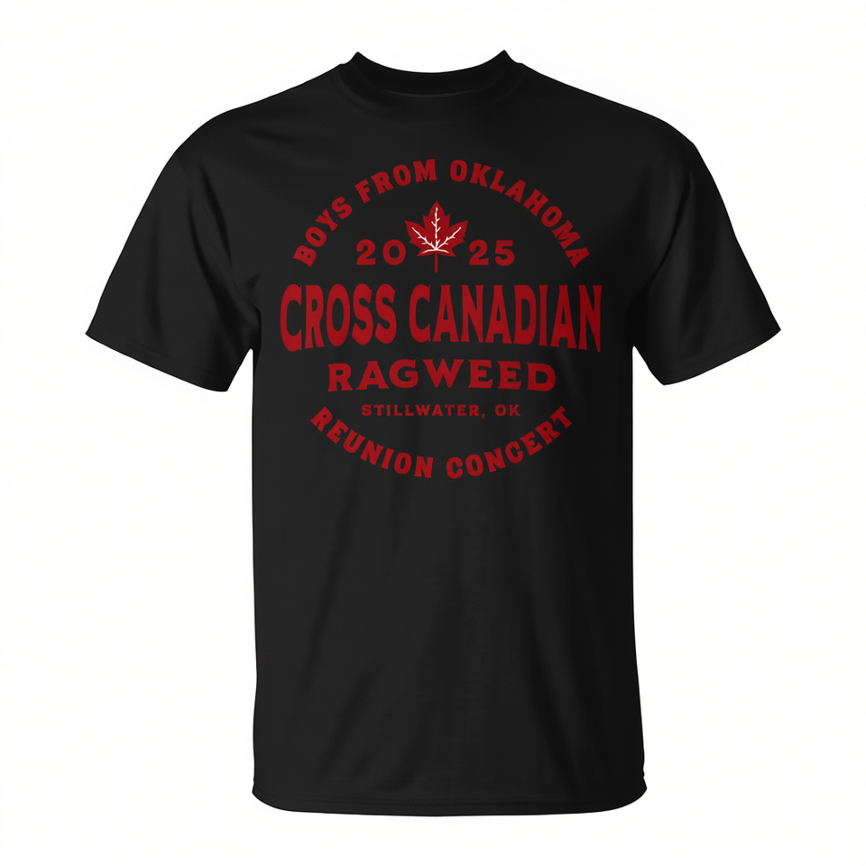 Cross Canadian Ragweed T-shirt noir unisexe pour adulte, col rond, manches courtes, coupe classique, Reunion Concert Stillwater Ok