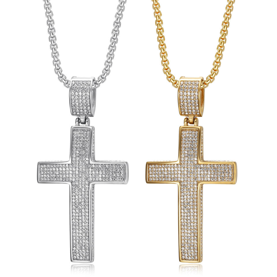 Croix Catholique Religieux Incrusté Zircon 316 Acier Inoxydable 18K Pvd Plaqué Or Fine Jewelry Pendentif Colliers pour Femmes Hommes 2024
