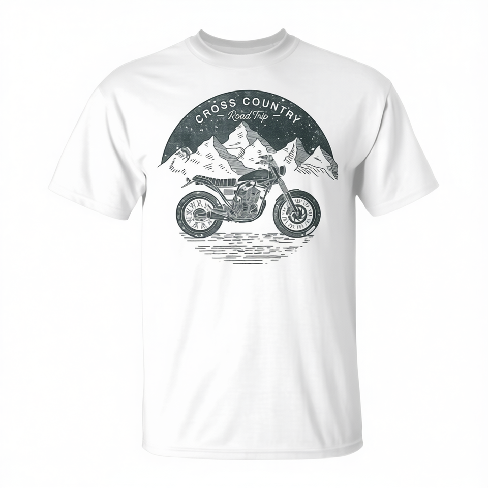 T-shirt unisexe pour adultes à manches courtes et col rond avec impression sérigraphique pour les voyages en moto tout-terrain