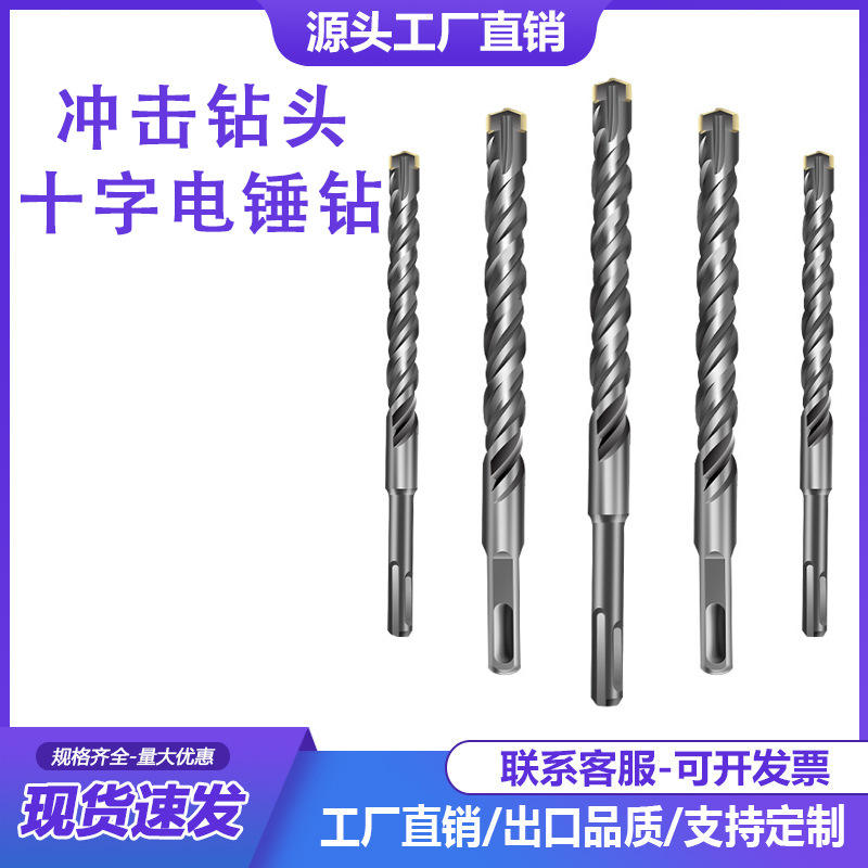 Cross-Hammer Impact Drill Bit for Concrete Walls Square Shank Extended Rotating Head Four-Hole Drill Masonry Concrete Drill Bit