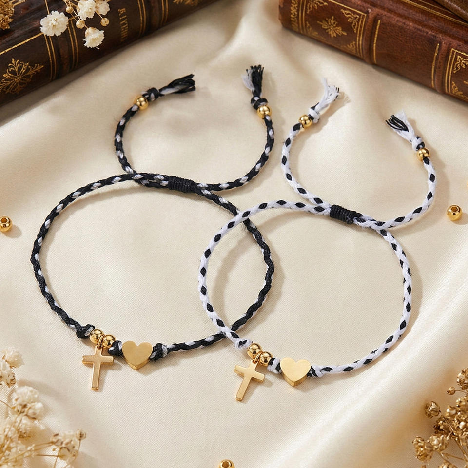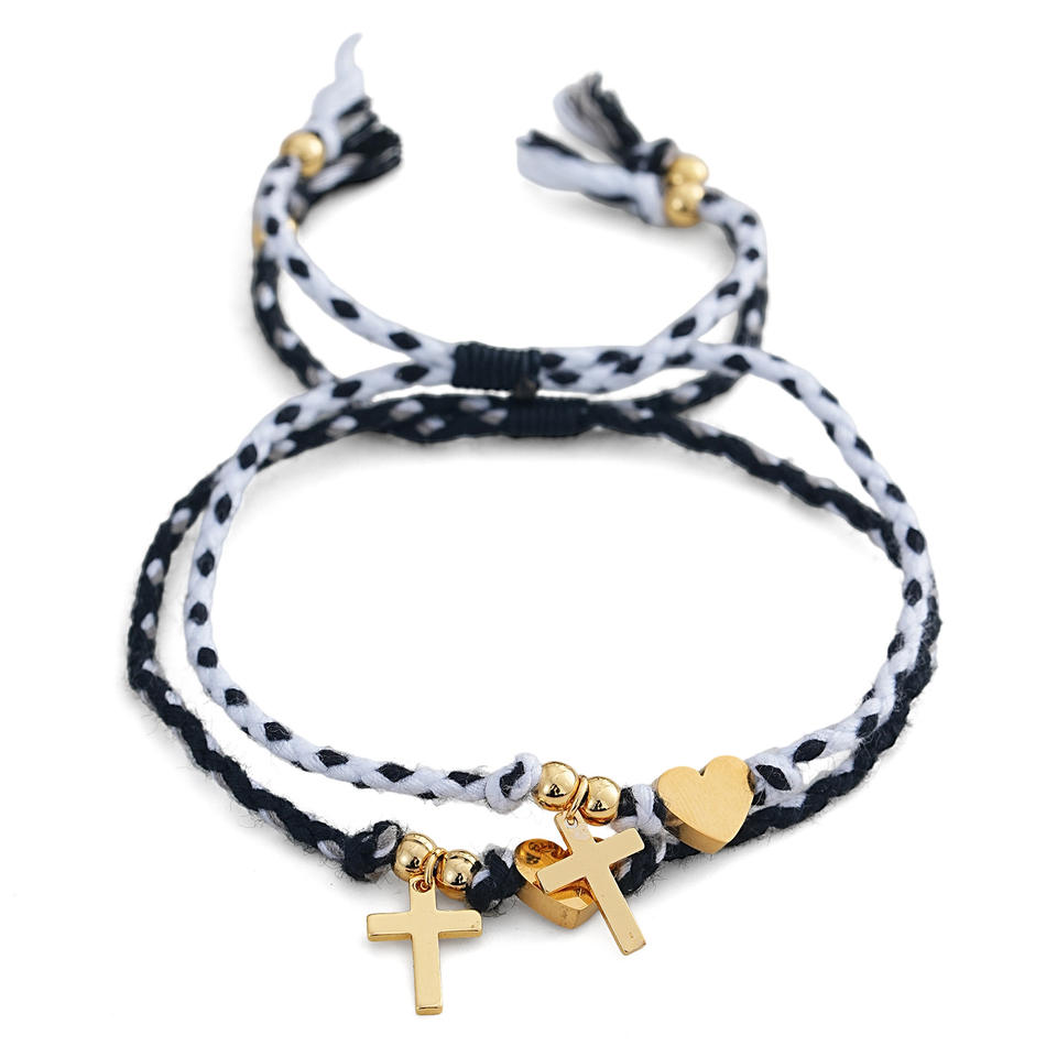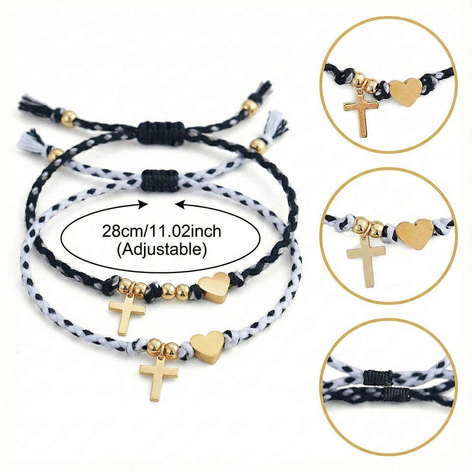 Bracelets de promesse avec pendentif en forme de cœur croisé, corde tressée réglable, bijoux d'amitié, cadeau pour les amoureux, cadeau de la Saint-Valentin