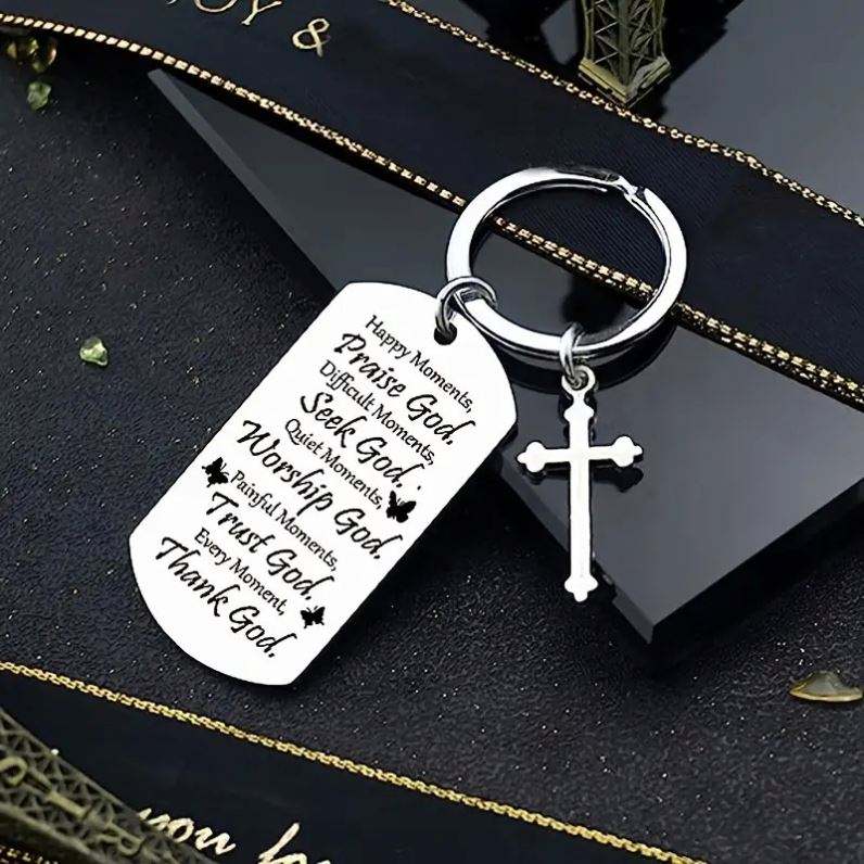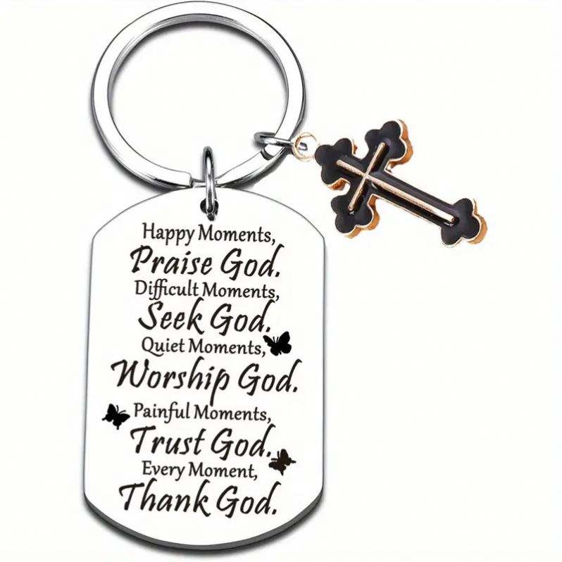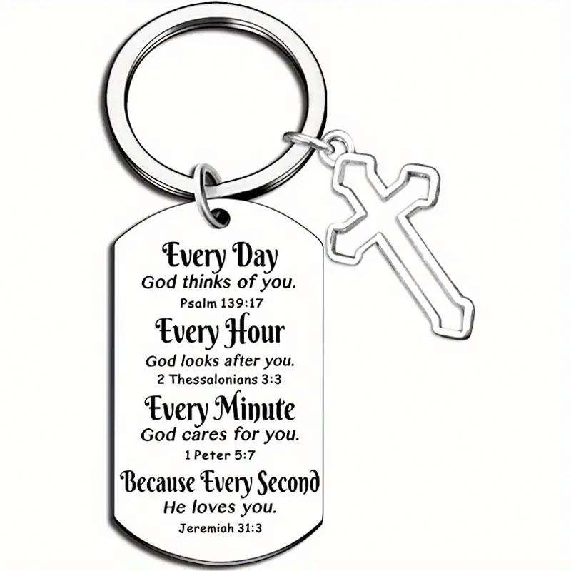 Porte-clés Croix, Cadeau de Baptême pour Femmes et Hommes, Verset Biblique Chrétien, Cadeau Religieux pour Ami, Première Communion, Porte-clés Foi Jésus