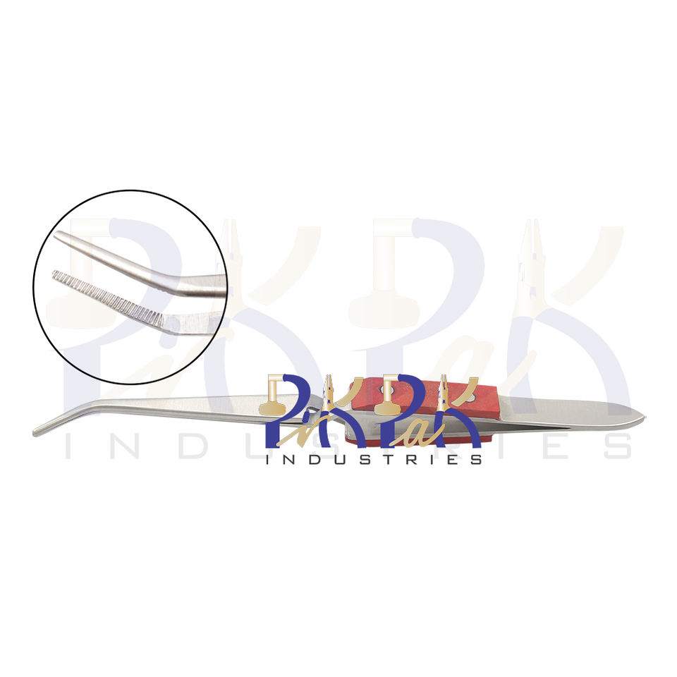 Cross Lock Angled Tweezer W/Fiber Grips For Soldering