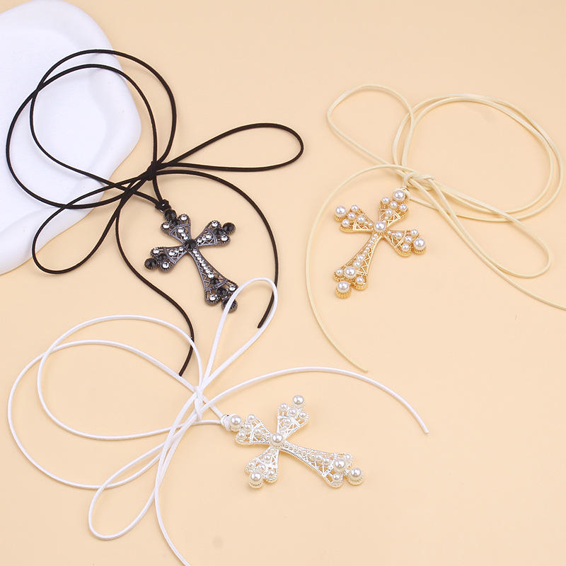 Collier Croix en Alliage de Zinc avec Pendentif Strass, Chaîne de Pull Tendance, Bijou de Fête, Design Géométrique, Origine Yiwu