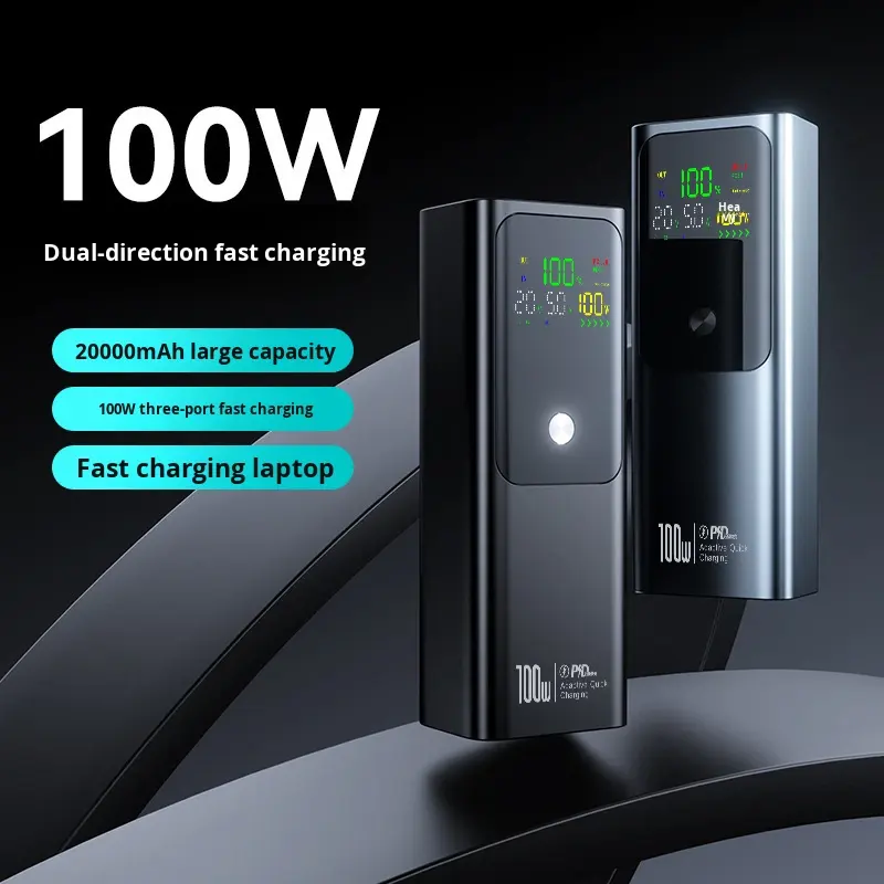 Banque d'alimentation portable à grande capacité 20000 mAh avec affichage numérique, charge rapide bidirectionnelle 100W transfrontalière