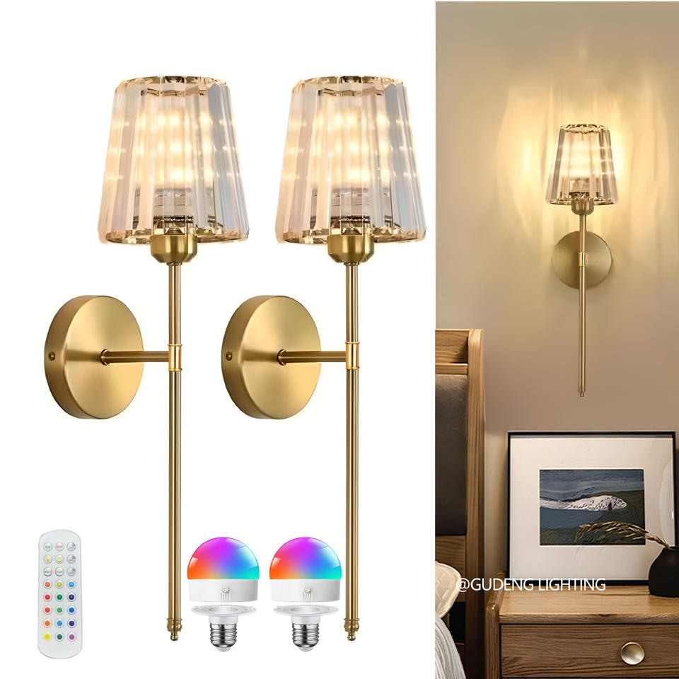 Abat-jour en cristal avec corps de lampe doré - pack individuel