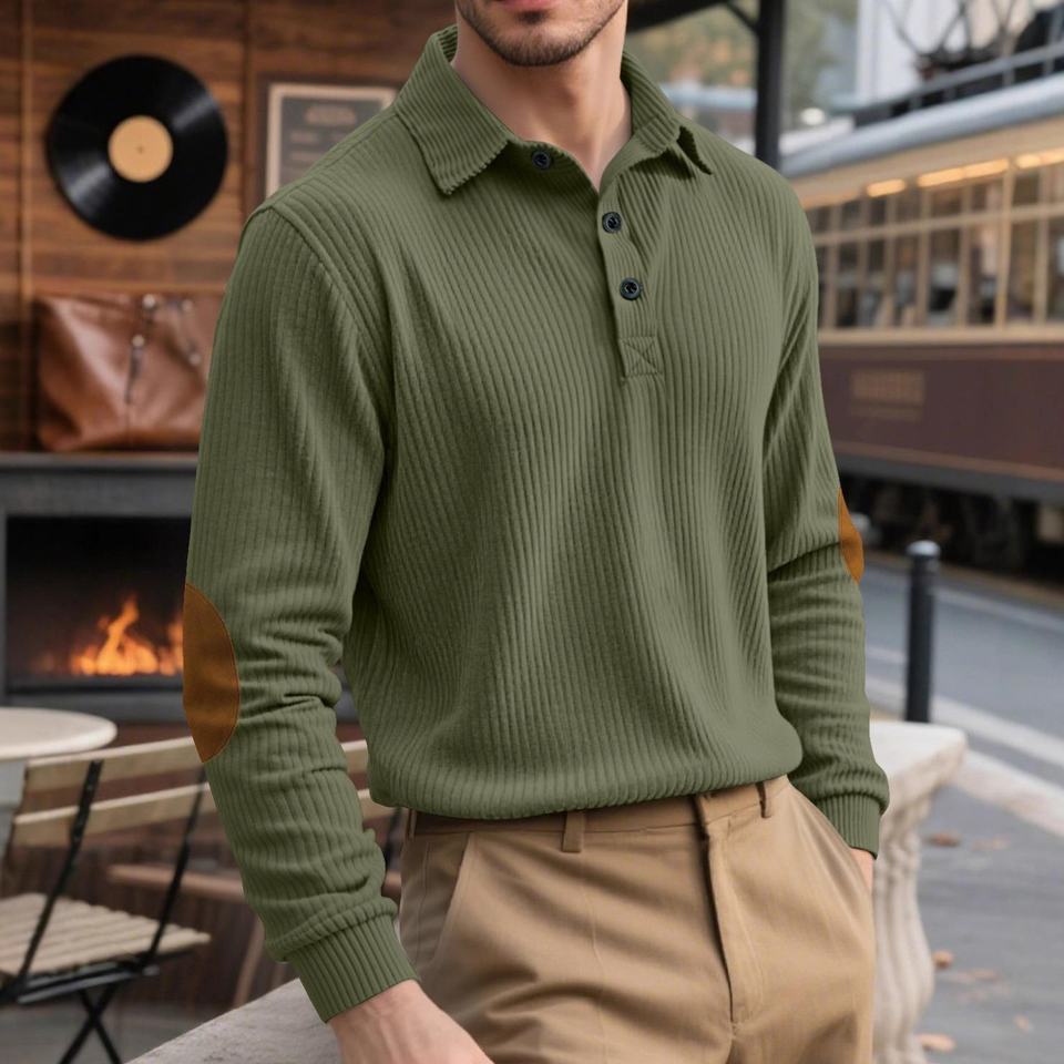 Pull-over en velours côtelé à col polo pour homme, boutonné, pour l'automne et l'hiver, transfrontalier