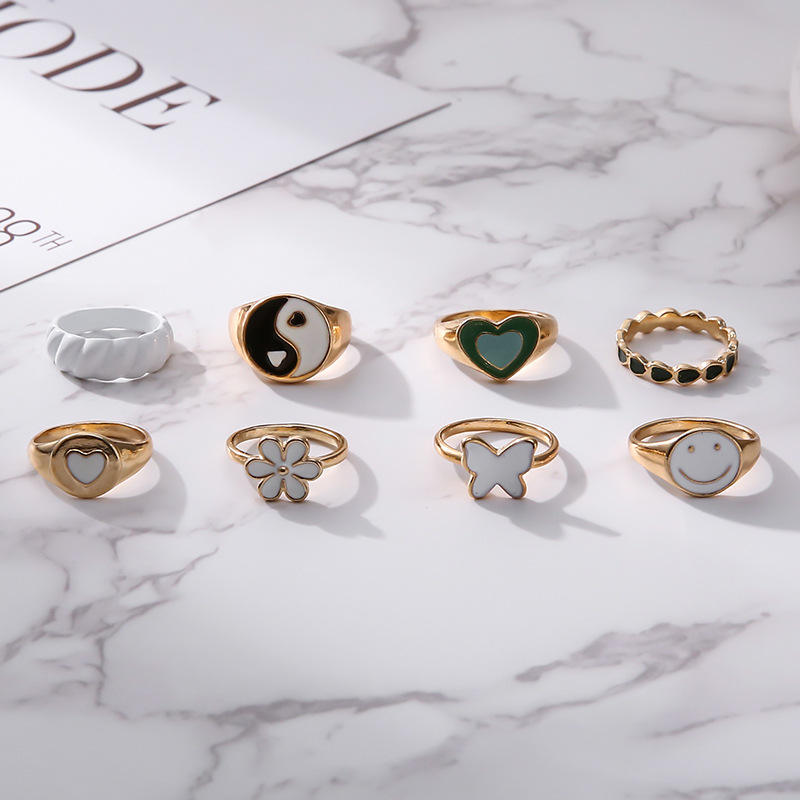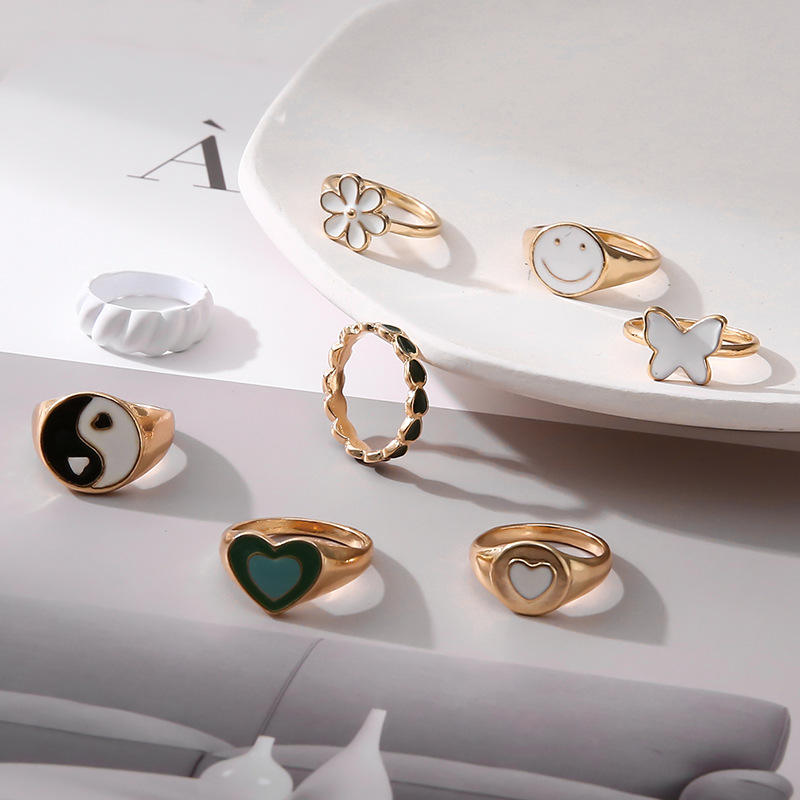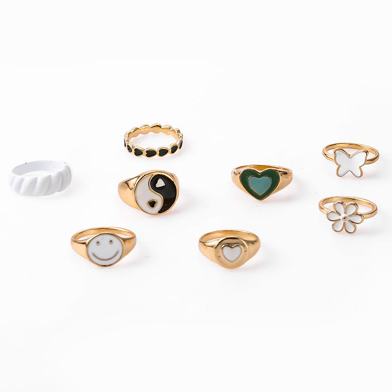 Bague de doigt élégante et tendance en alliage, en forme de cœur avec motif goutte d'huile et motif sourire ouvert, best-seller transfrontalier, vente en gros