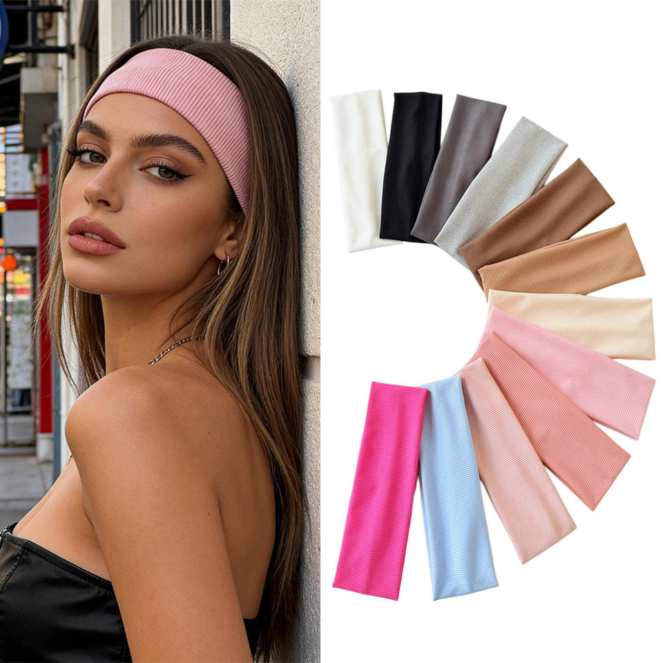 Meilleures ventes transfrontalières : Bandeau pour femme fait main, côtelé à carreaux, large, absorbant la transpiration, pour le sport et le yoga