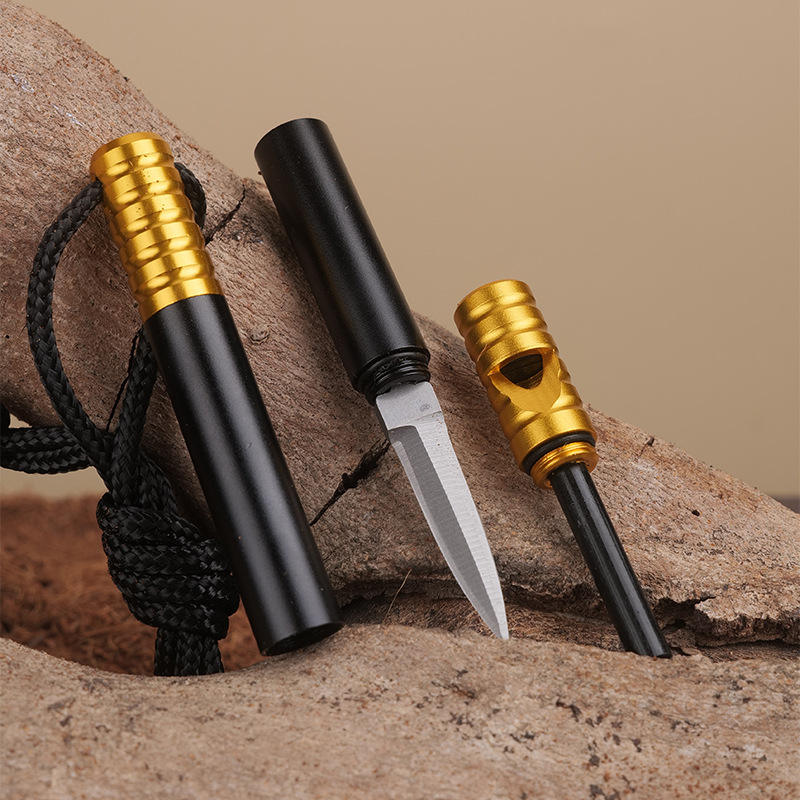 Mini collier de tige de fer de poche de survie en plein air en acier inoxydable de conception créative transfrontalière couteau Cuchillo sculpté à la main