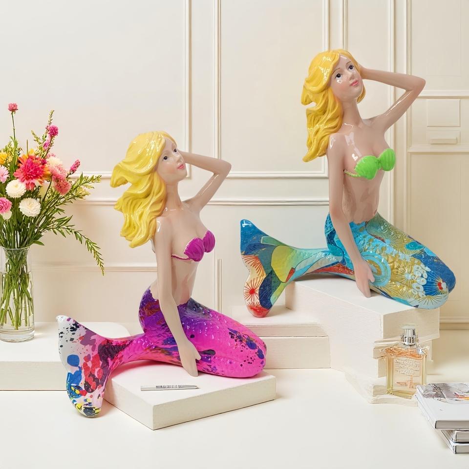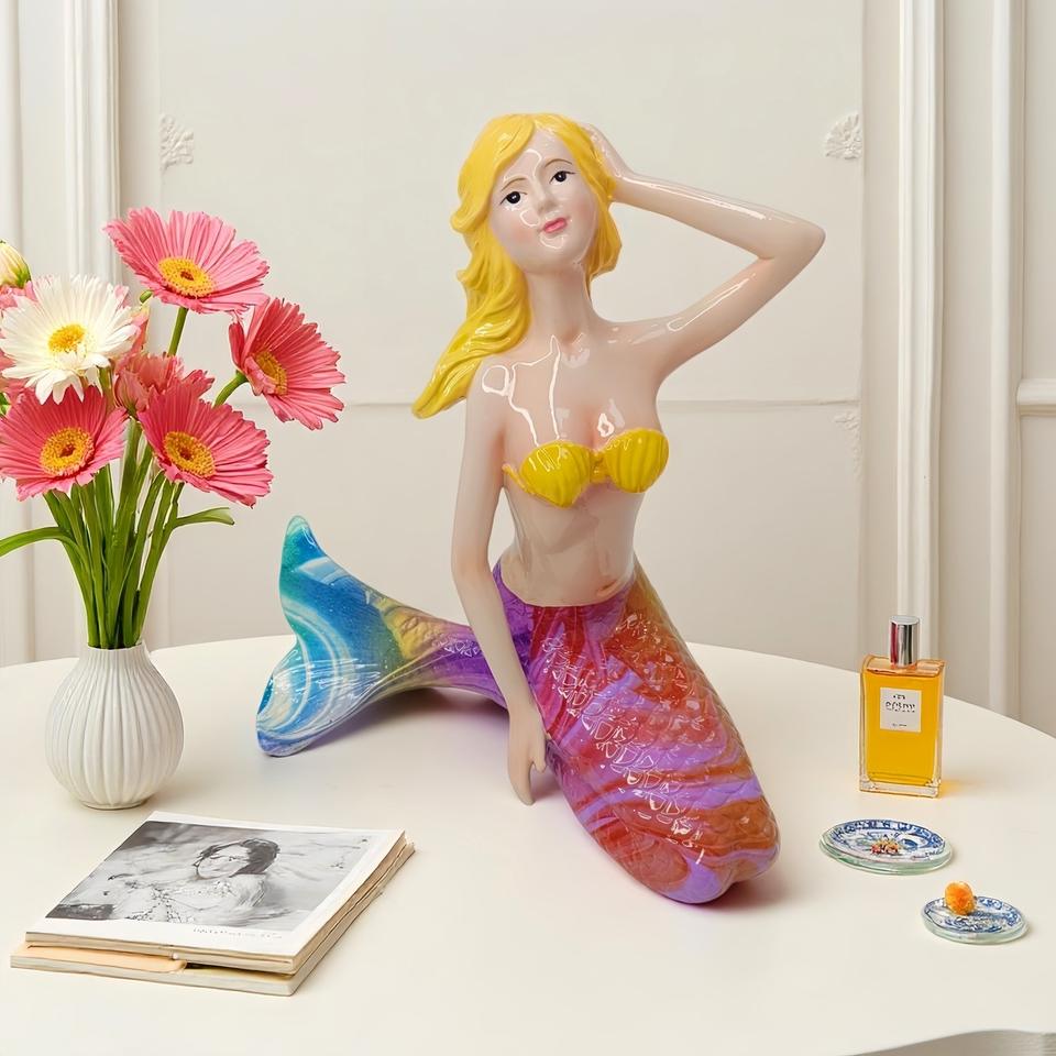 Figurine de sirène créative en résine époxy, style art populaire sculpté, pour décoration de bureau, jardin, cour et piscine