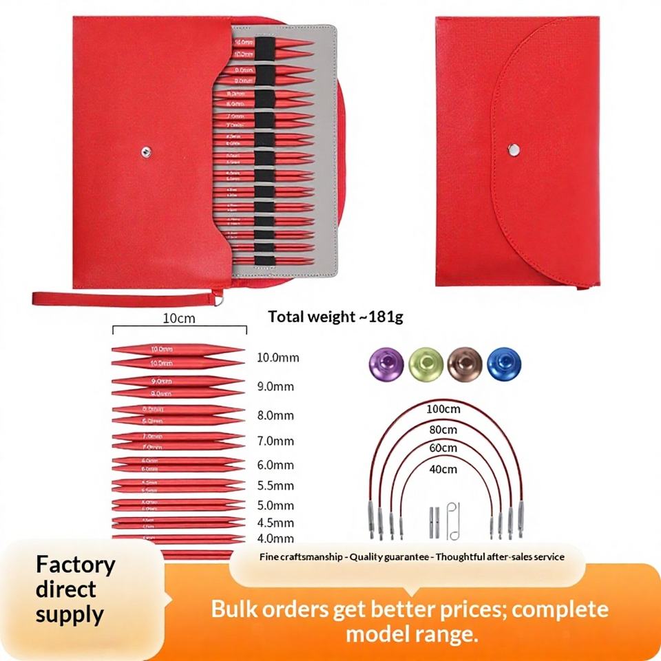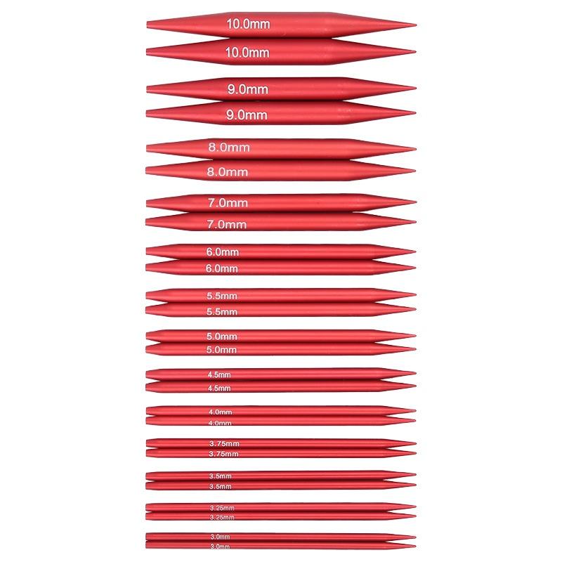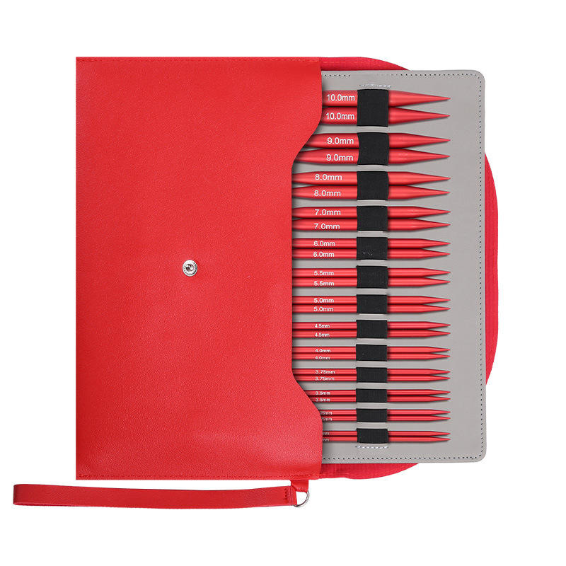 Lot de 13 paires d'aiguilles à tricoter circulaires détachables rouges mats de 10 cm pour pulls, emballées dans un étui, vente en gros transfrontalière