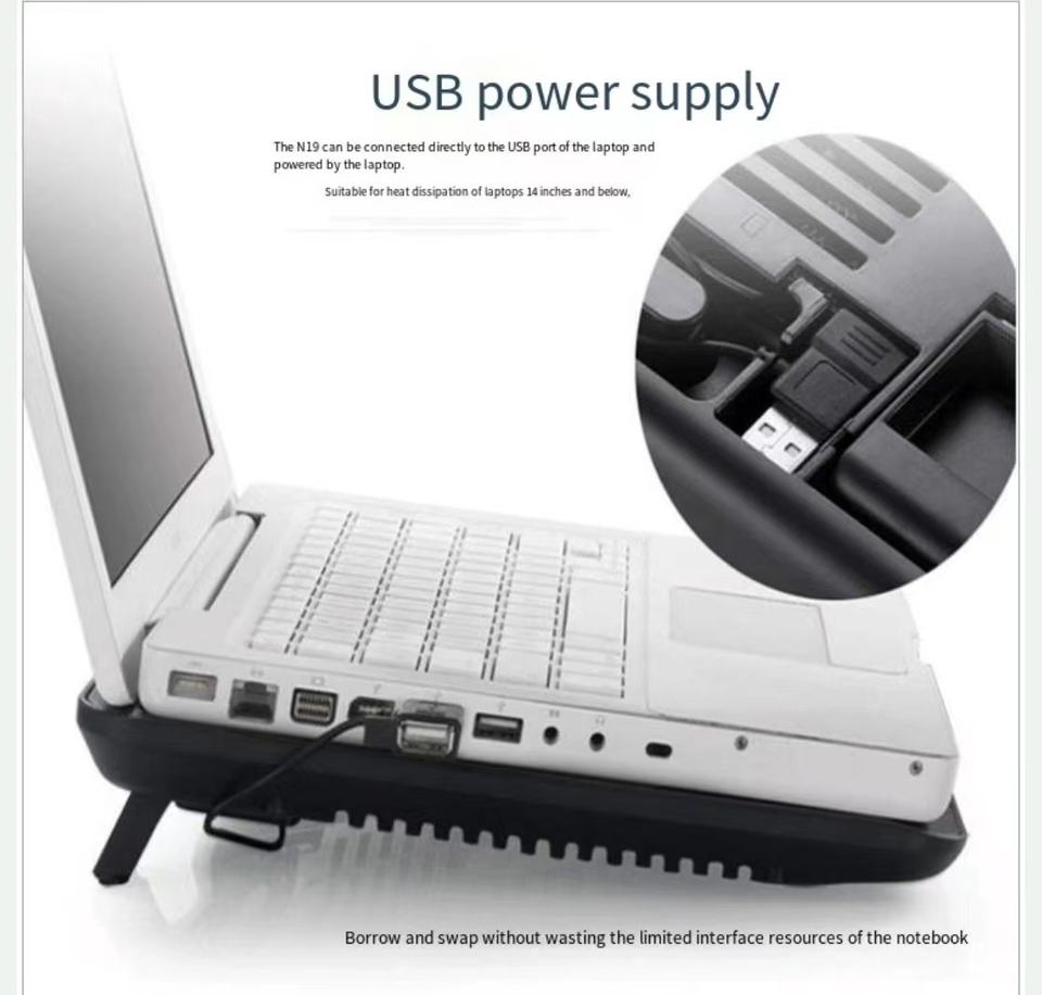 Refroidisseur pour ordinateur portable N19 14 pouces, vente directe transfrontalière, ventilateur à lumière led, usb, mini refroidisseur pour ordinateur portable, coussin de refroidissement