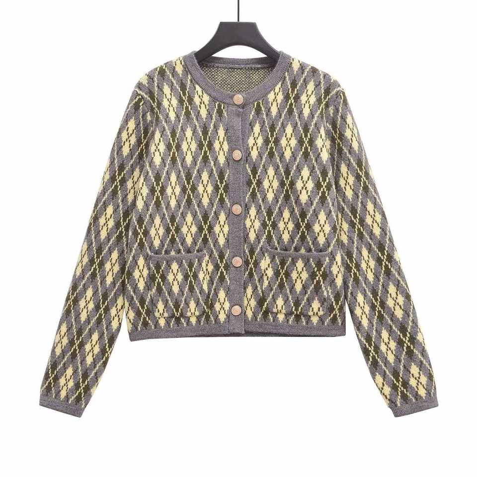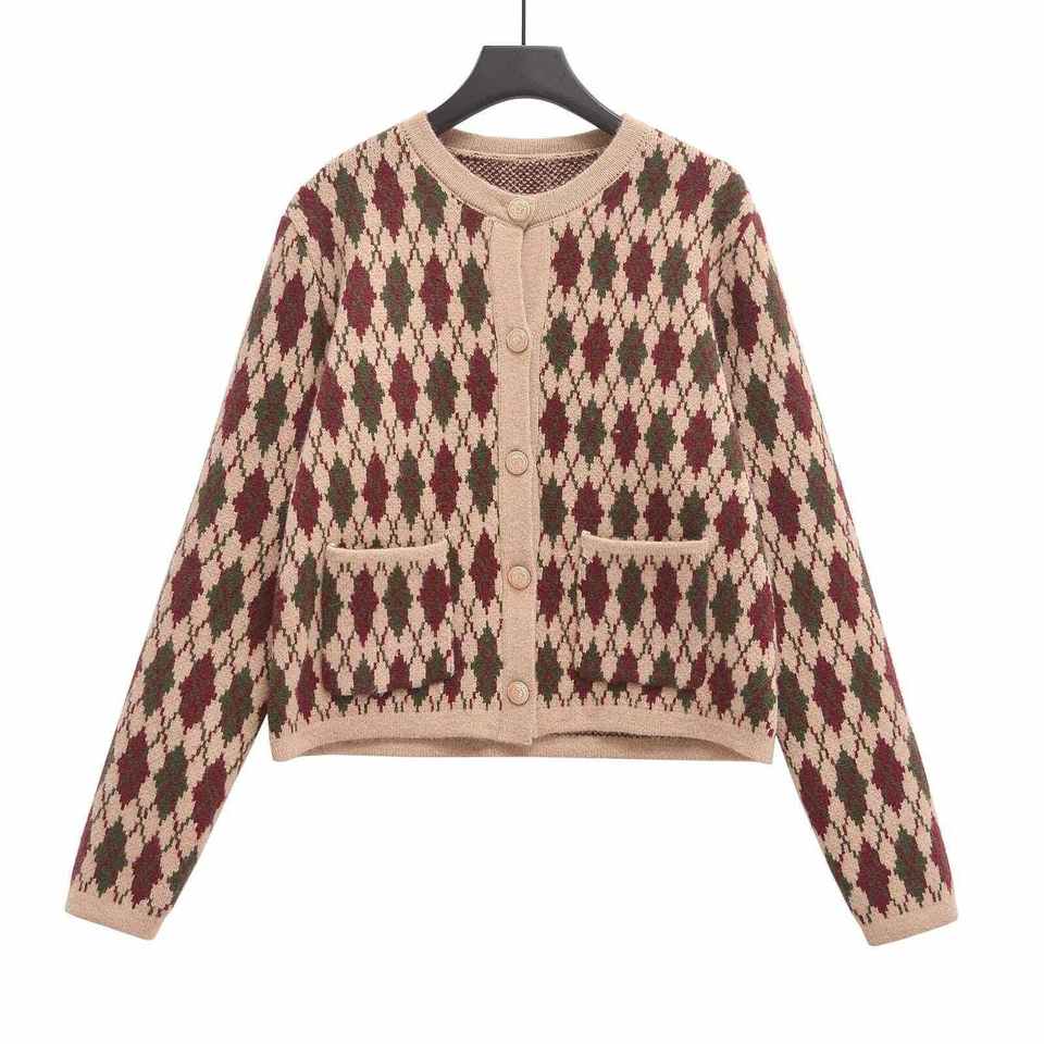 Pull en polyester vintage pour femme, style européen et américain, pour le commerce transfrontalier, avec fermeture à plusieurs boucles en forme de losange