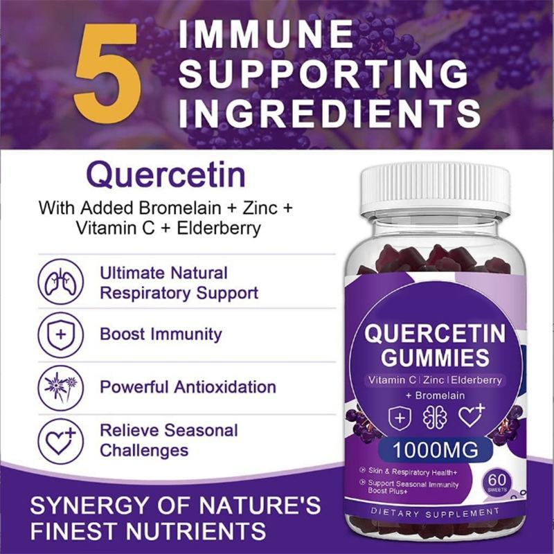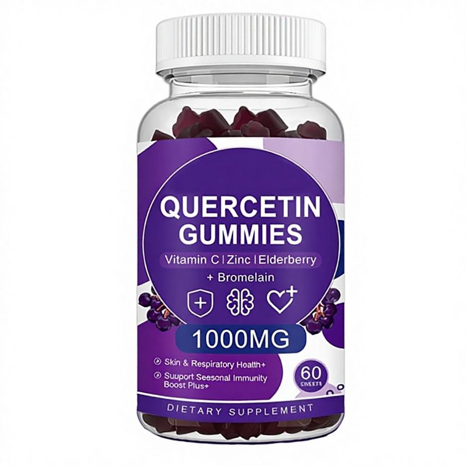 Gummies de Quercétine 60 unités avec Vitamine C, Zinc, Sureau et Bromélaïne pour le Soutien Immunitaire, Exportation Transfrontalière, Bouteille, Chine Continentale