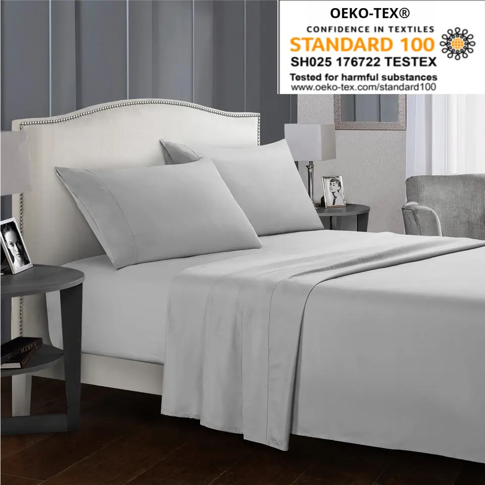 Draps de lit transfrontaliers pour le commerce extérieur, draps-housses, couleur unie, imprimés, 70 g/m², ensemble de quatre pièces en polyester