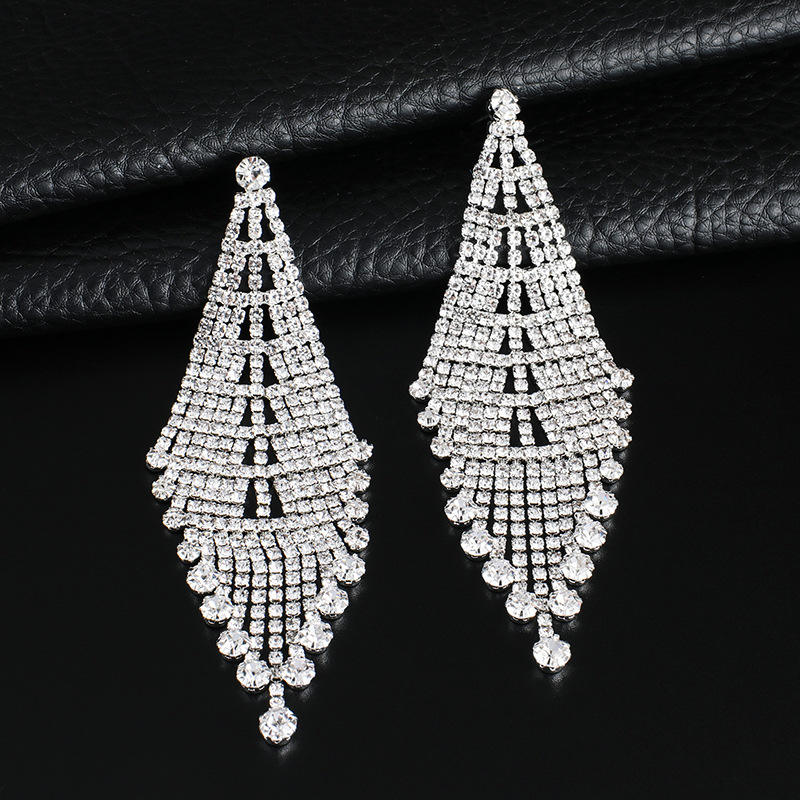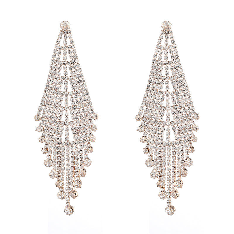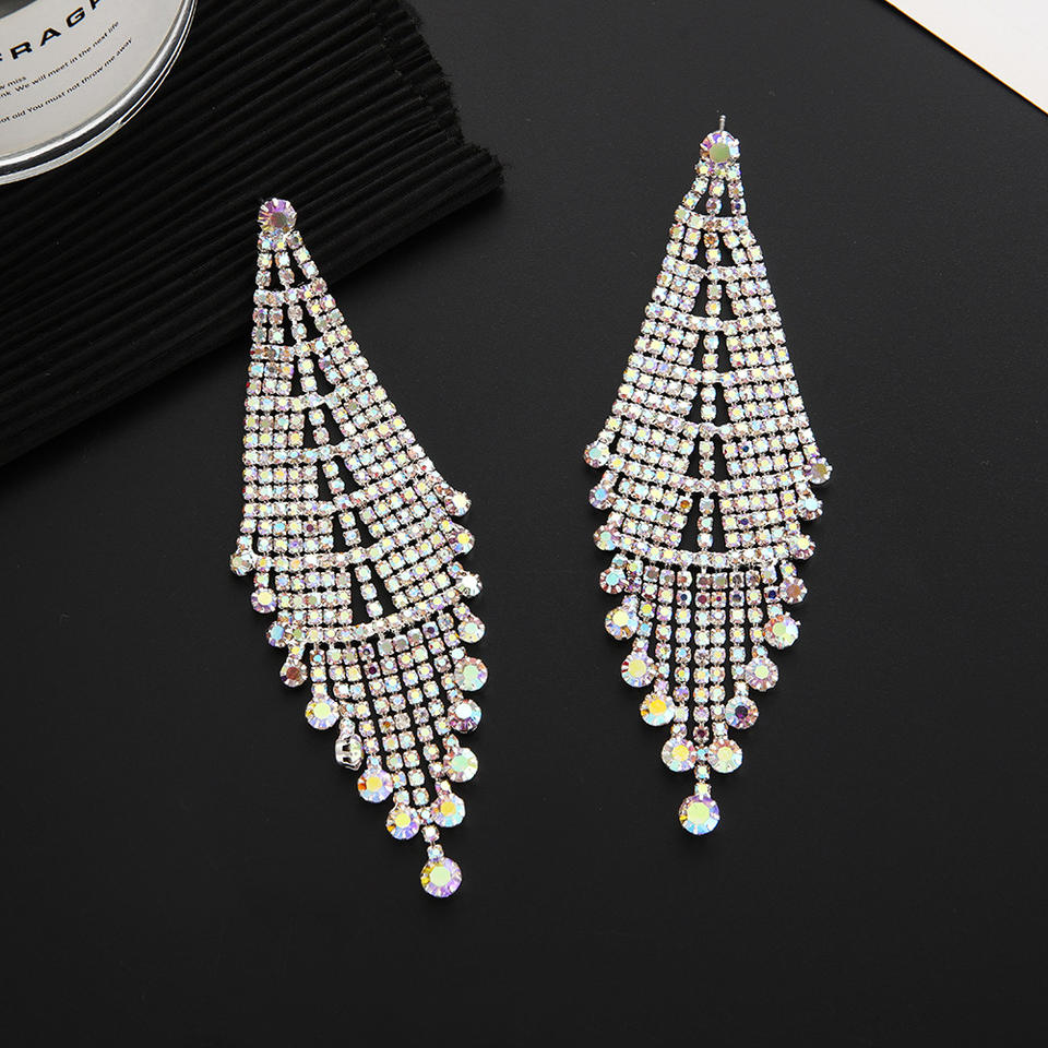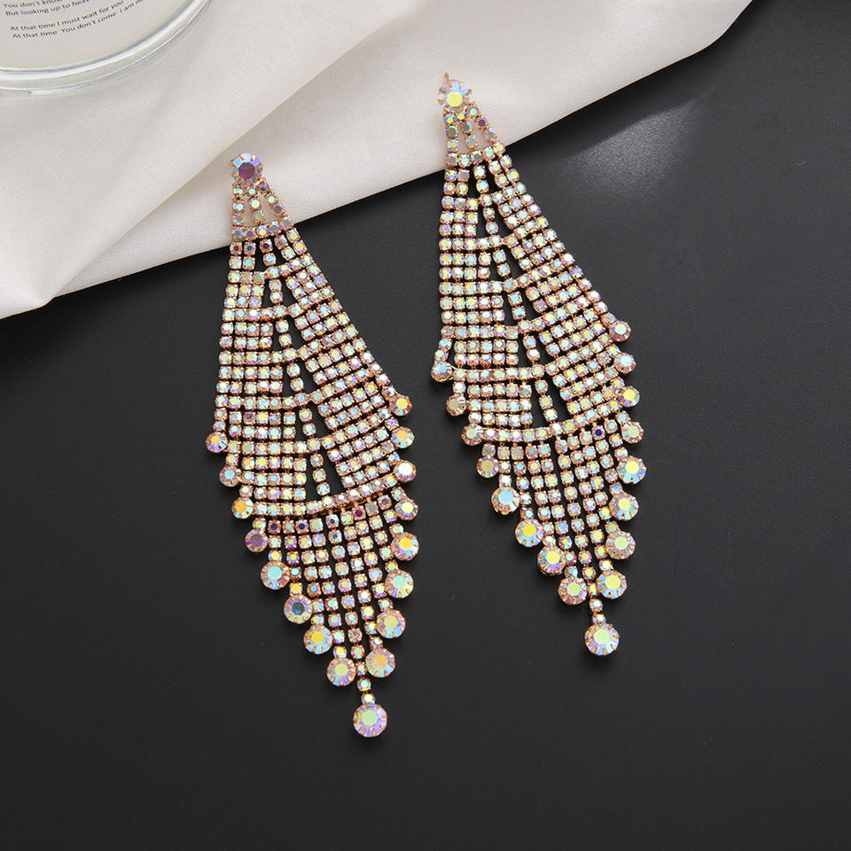 Boucles d'oreilles pendantes longues à pampilles en strass, tendance et très prisées, plaquées or pour femmes, vente en gros directe des fabricants