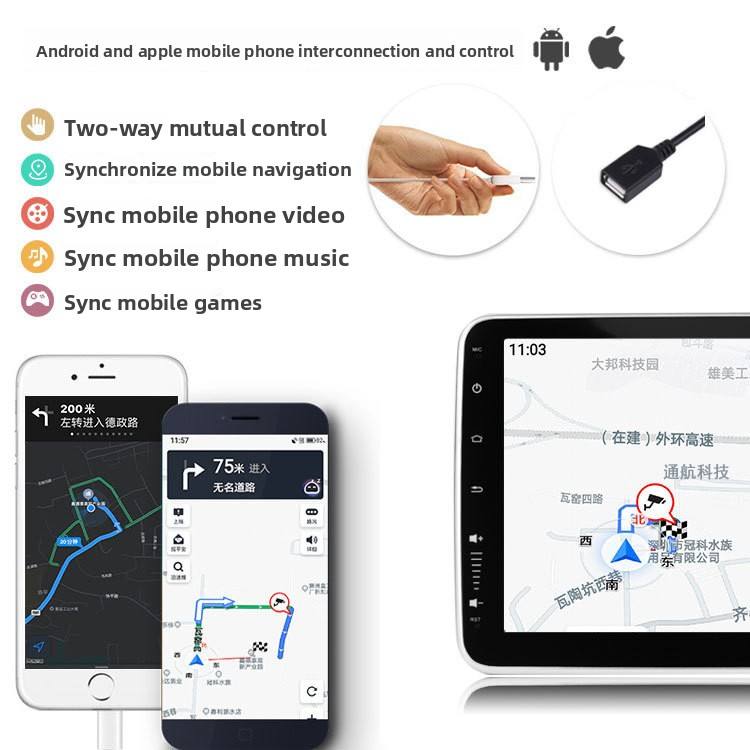 Nouveauté transfrontalière : autoradio MP5 Android universel à grand écran LCD de 10 pouces avec navigation et rotation à 360°, tête détachable