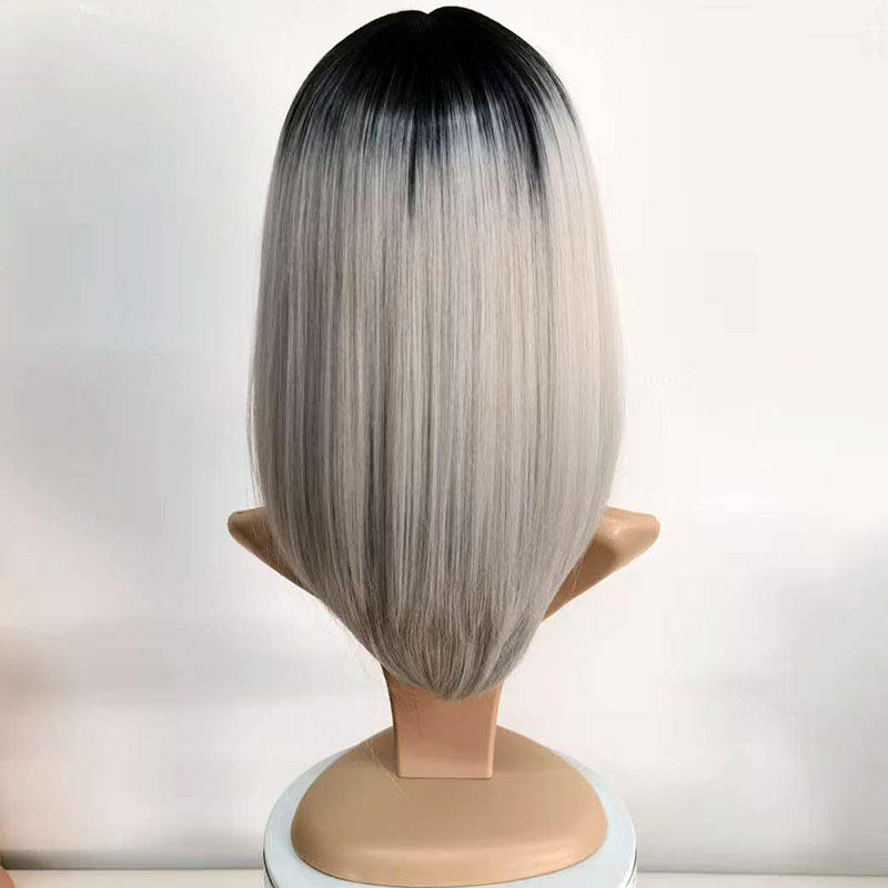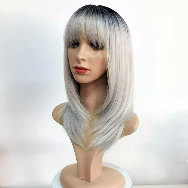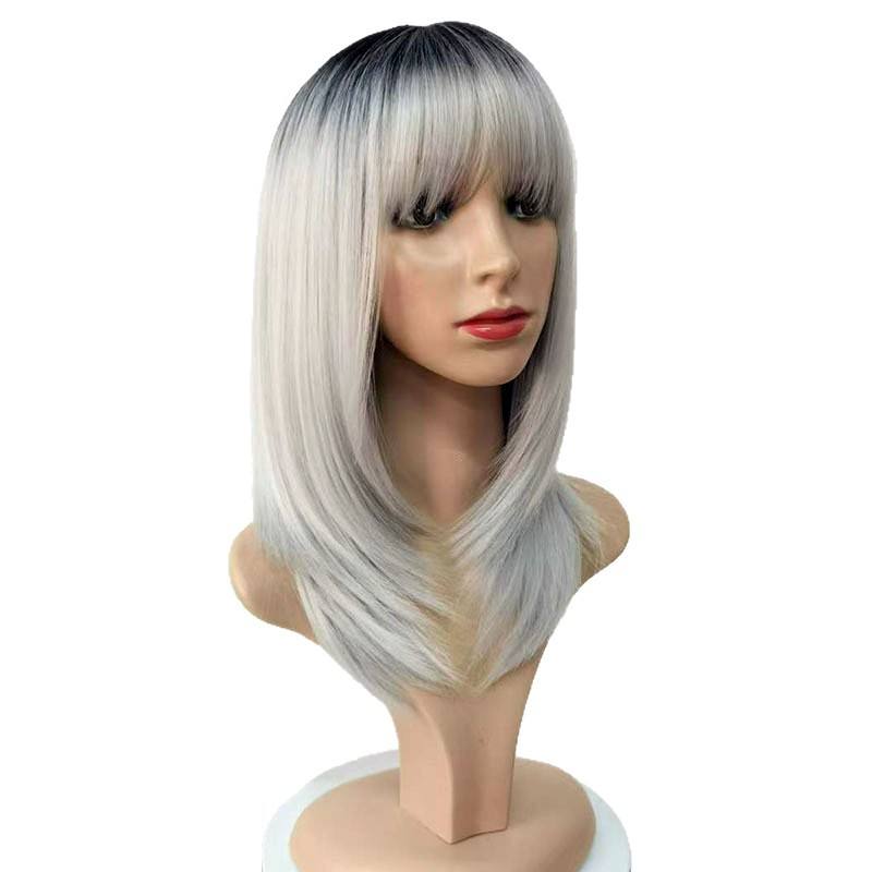 Nouvel Arrivage Transfrontalier : Perruque Droite Mi-longue Gris Dégradé avec Frange, Cheveux Synthétiques de Haute Qualité pour Femme, Résistants à la Chaleur