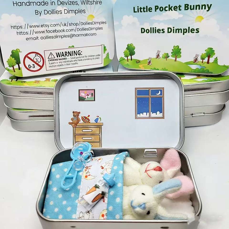 Nouveau jouet en peluche lapin transfrontalier avec boîte en fer à motif poche, cadeau de Pâques pour enfants, cadeau de fête, vente en gros, cadeau à offrir