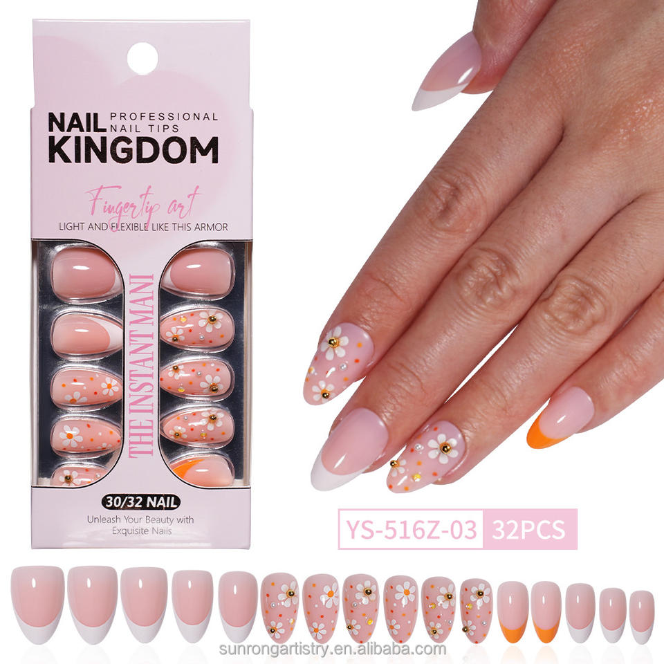Nouvelles capsules d'ongles portables transfrontalières, style manucure française, autocollants pour nail art, ensemble d'ongles artificiels