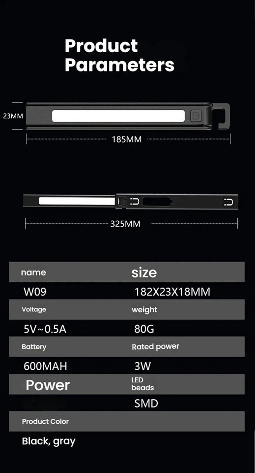 Nouvelle lampe de travail pliable à trois sources lumineuses, à aspiration magnétique, rechargeable par USB, avec règle d'écran LED, étanche, pour travaux transfrontaliers