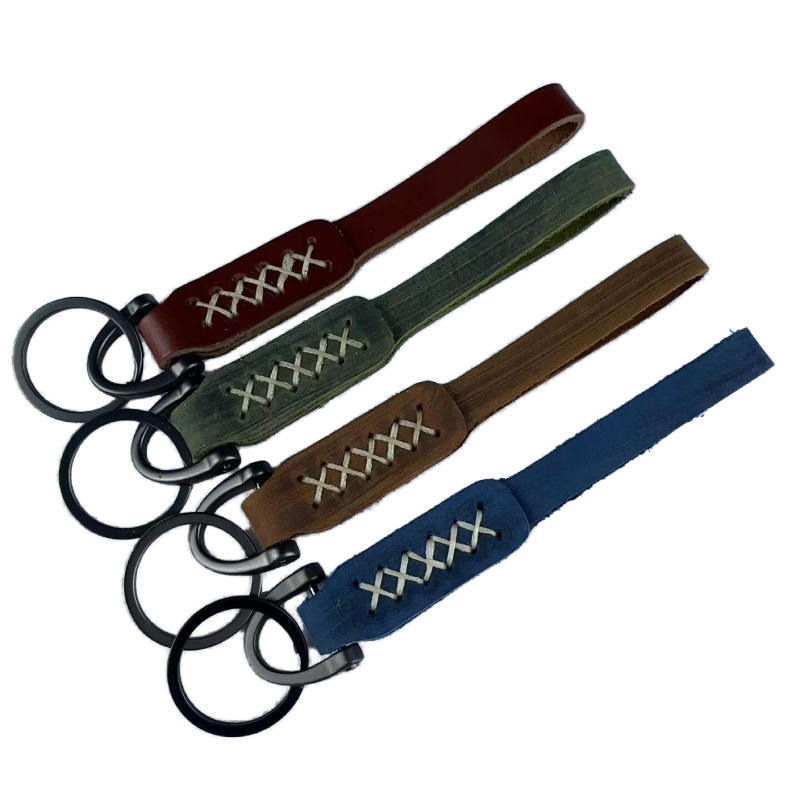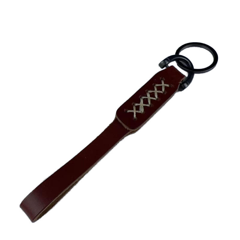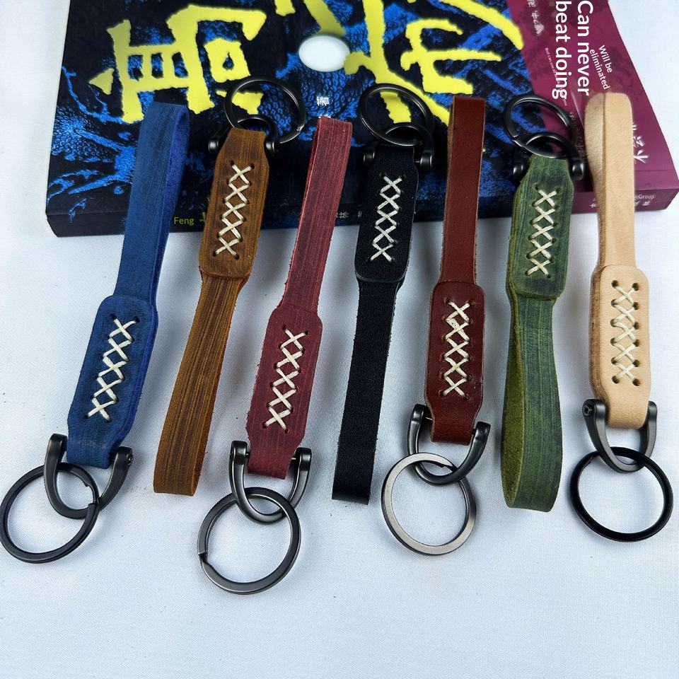 Porte-clés en cuir de vachette double couche, fait main, style international, design simple et créatif, cadeau de mode, pendentif tendance pour voiture, Henan