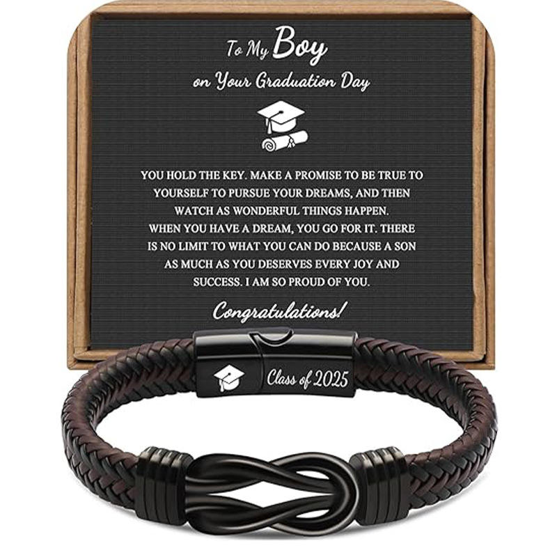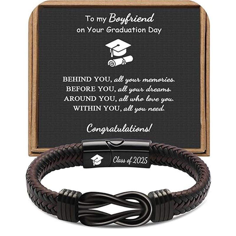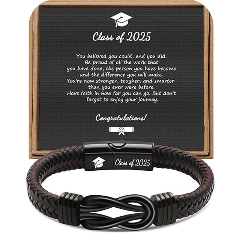Bracelet en cuir à boucle magnétique, tissé à la main, saison rentrée des classes, motif huit, pierre naturelle pour homme