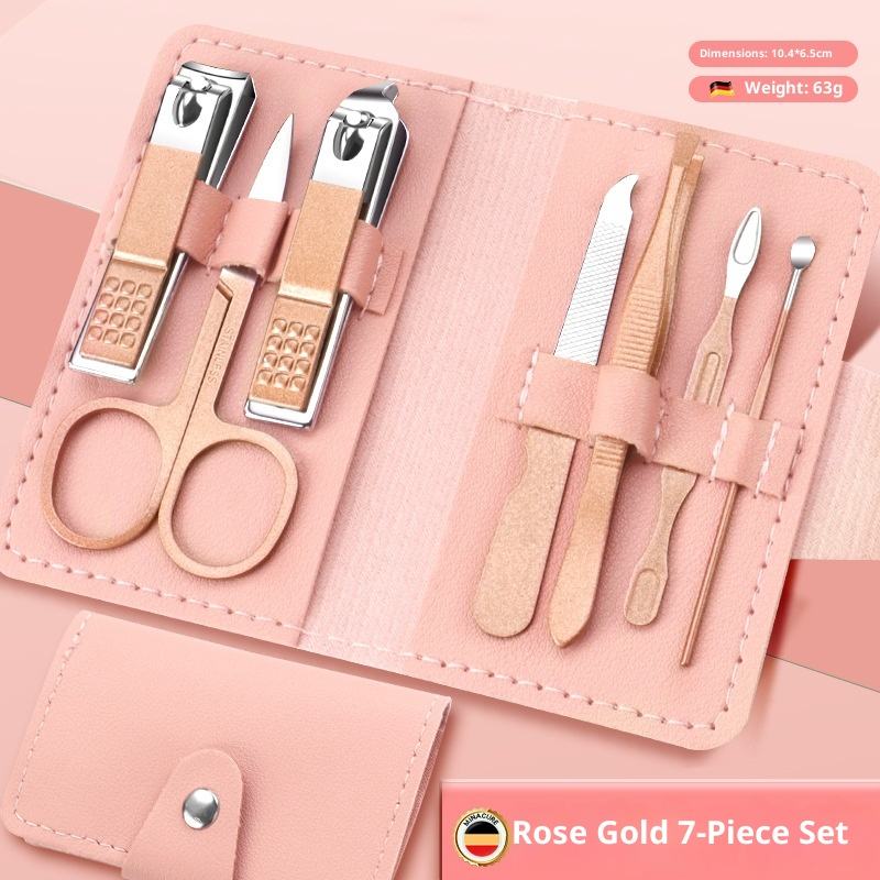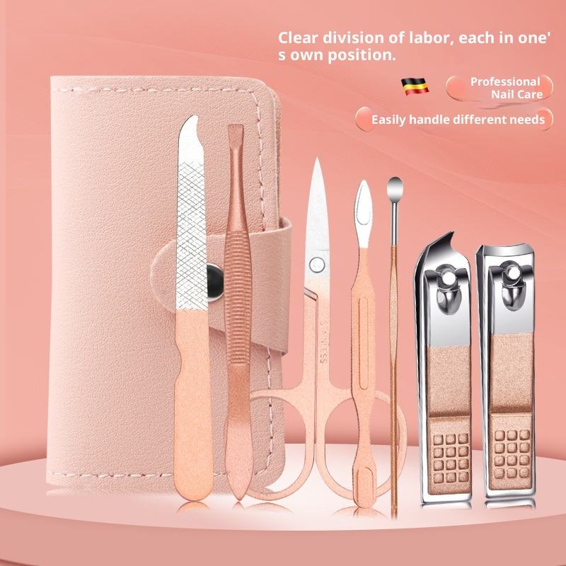 Ensemble professionnel transfrontalier de coupe-ongles en acier inoxydable, sept pièces, durable, portable, lame droite tranchante, ensemble complet