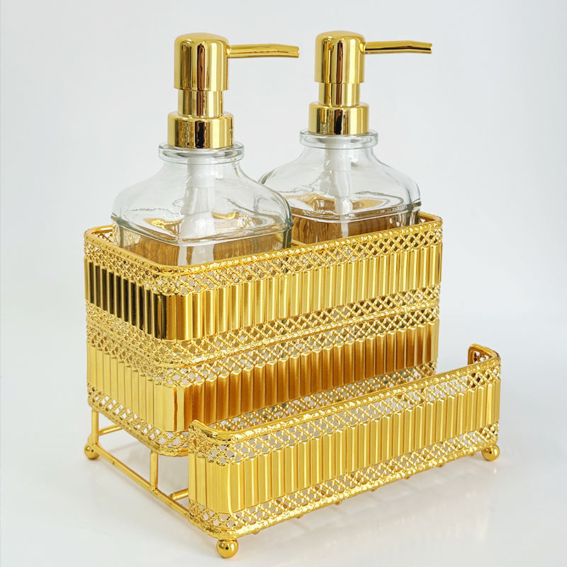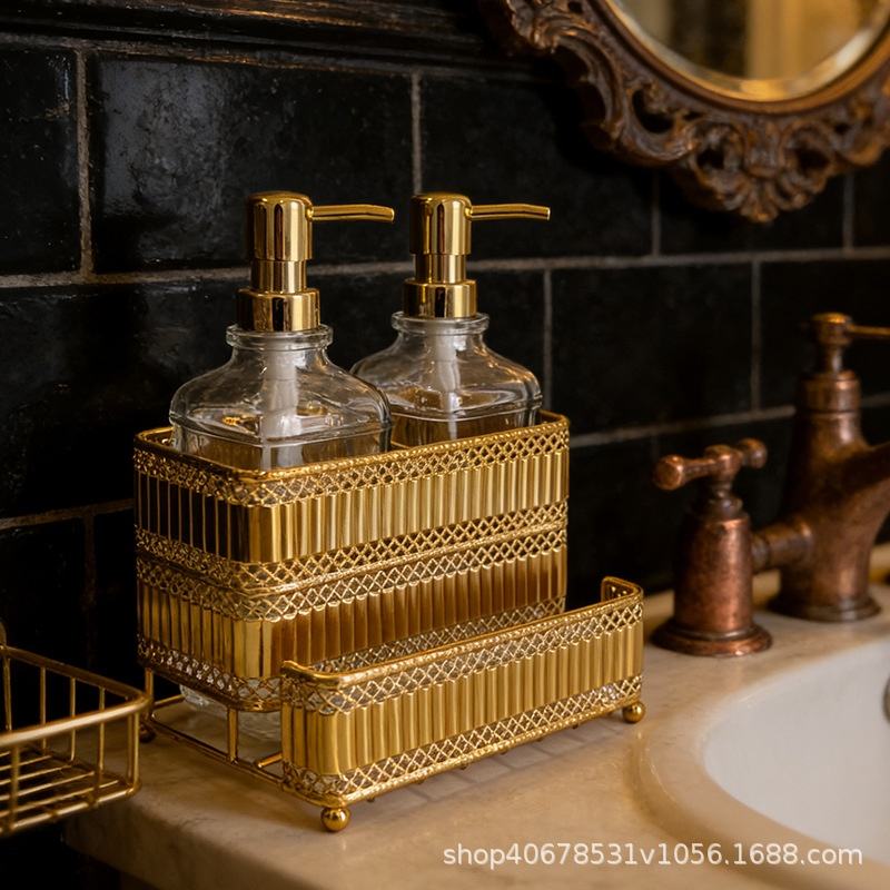 Ensemble de distributeurs de savon transfrontaliers en fer électroplaqué, style rétro de luxe léger, pour salle de bain, décoration et distribution de liquide de lavage