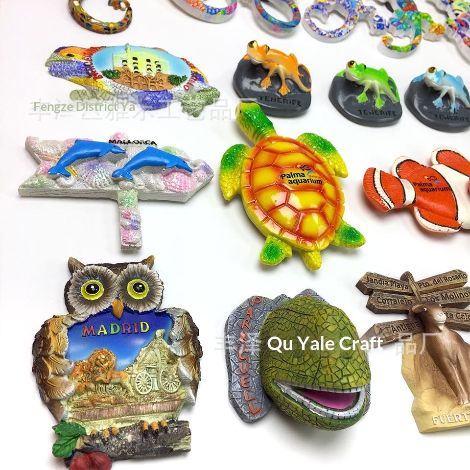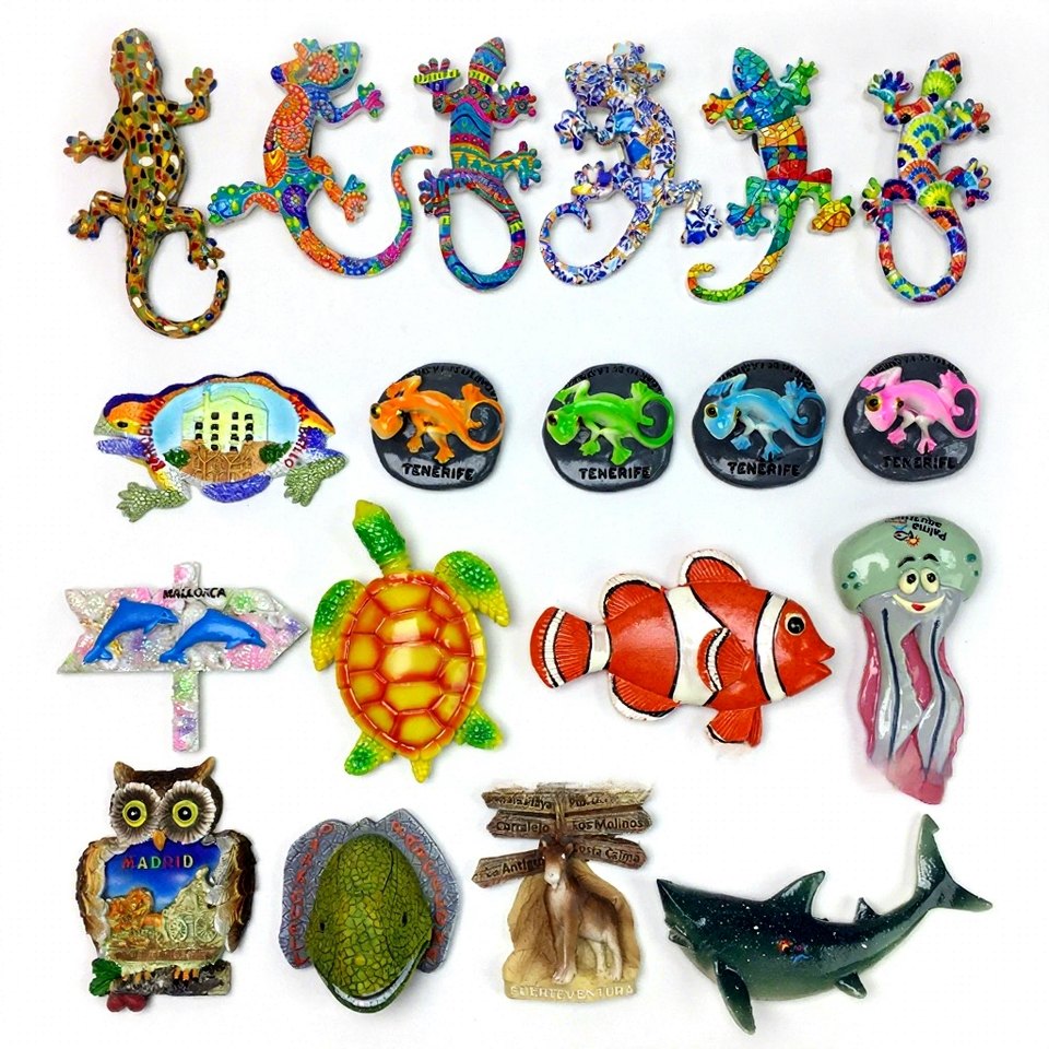 Aimant décoratif artisanal souvenir touristique espagnol de style méditerranéen, motif animalier, 7-9 cm, vente en gros transfrontalière en provenance d'Espagne