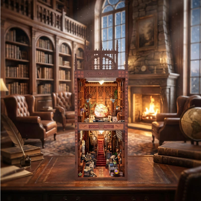 Cross-border Starry Sky Library DIY Miniature House Model Bookend 3D Rectangular Assembly Toy Wooden Building Blocks Gift