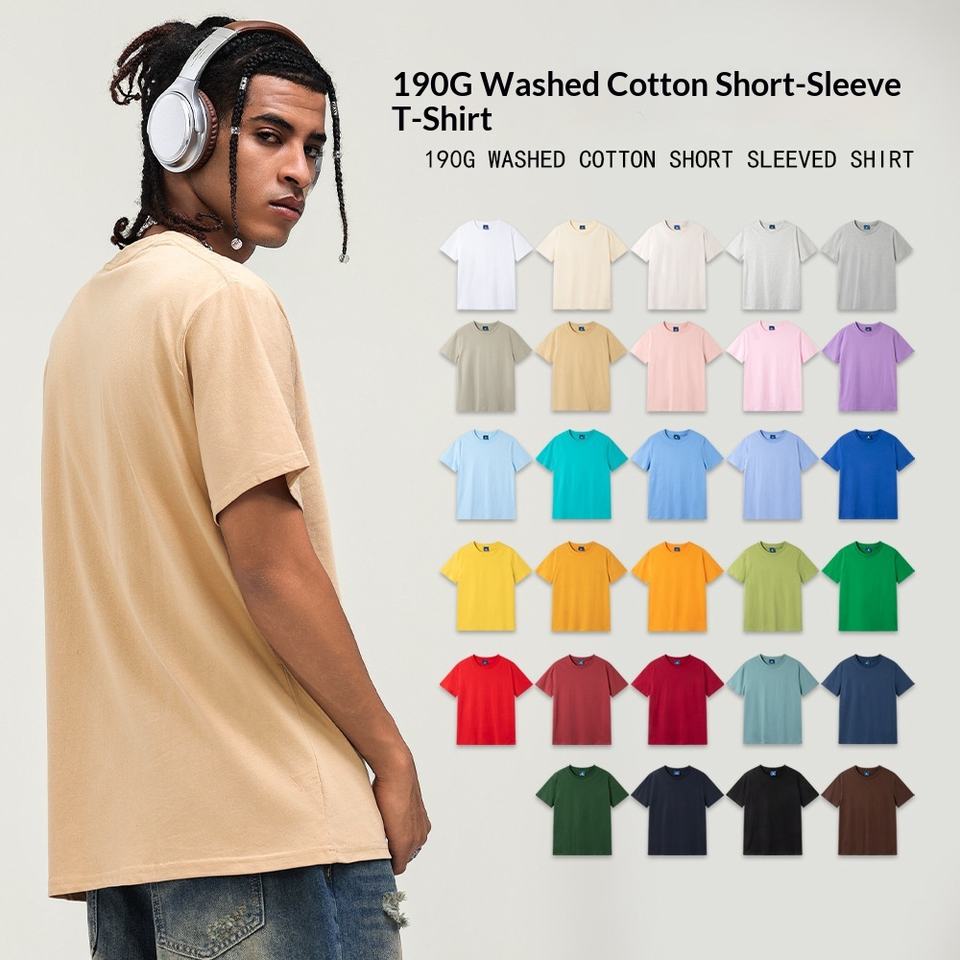 T-shirt uni en pur coton 190g à col rond, style transfrontalier, taille européenne standard, manches courtes, coupe ample, vierge pour publicité