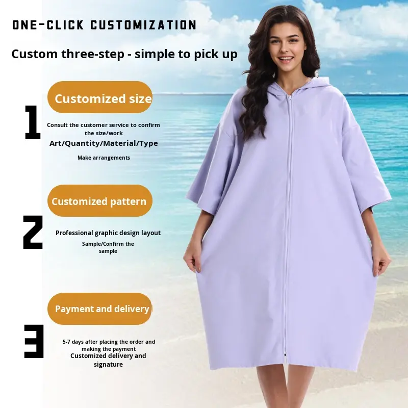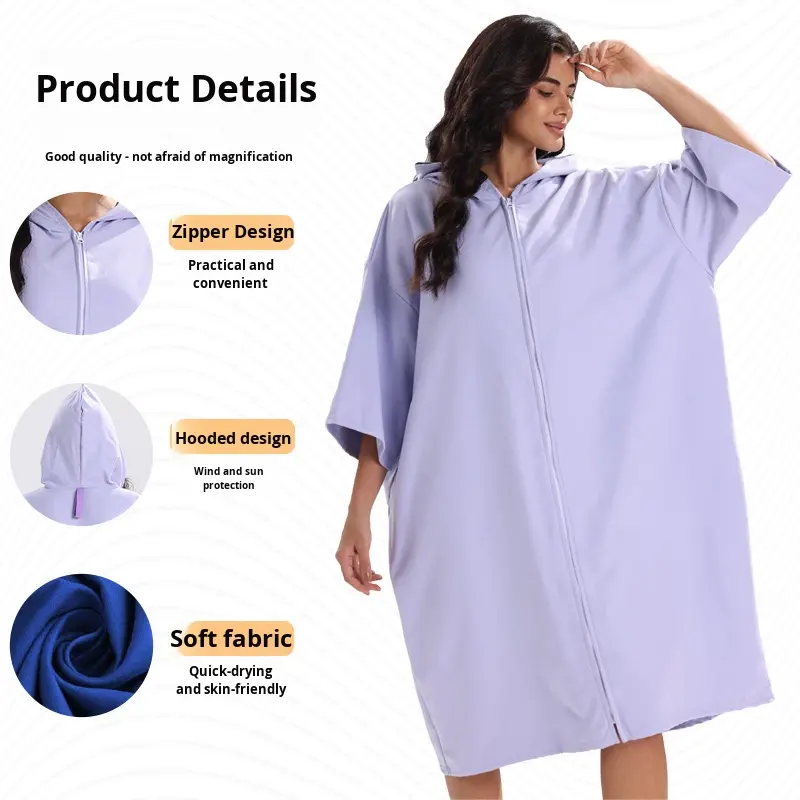 Peignoir de bain à manches zippées, serviette de plage, serviette de bain à séchage rapide, protection solaire, pour la plongée et le surf transfrontalier