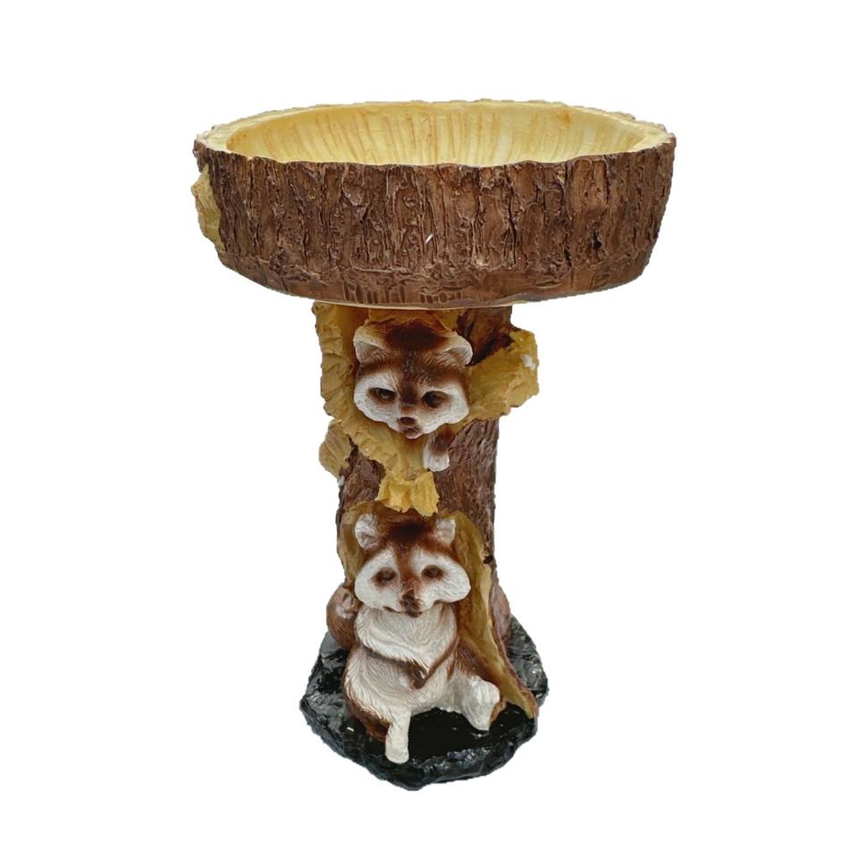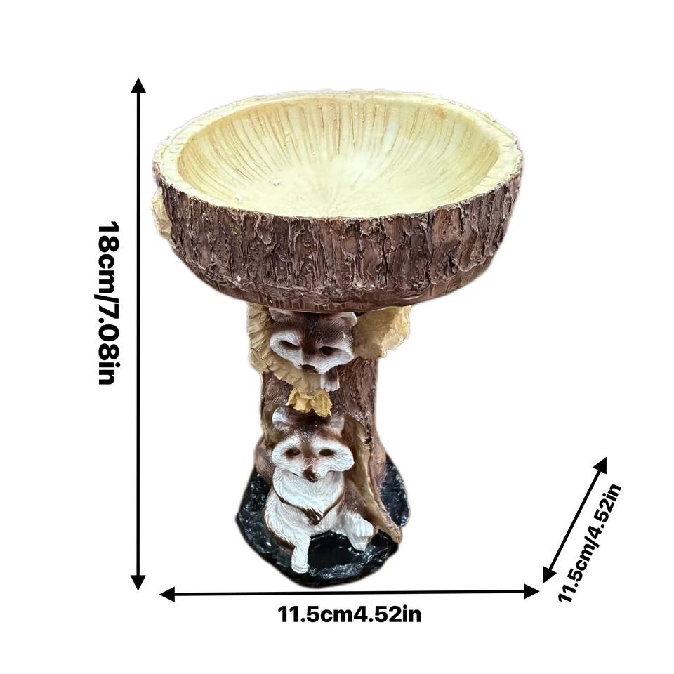 Mangeoire à oiseaux en résine en forme de souche d'arbre, ronde, pour cour, ornement artisanal, dispositif d'alimentation pour oiseaux, décoration design, petit raton laveur