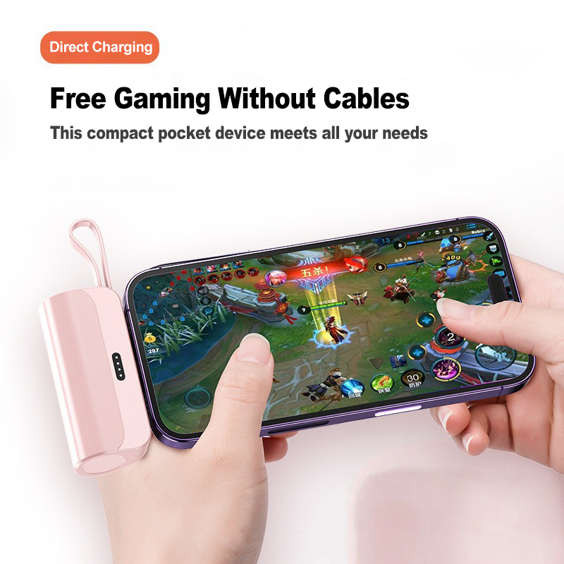 Banque d'alimentation portable mini en gros transfrontalier 5000 mAh avec câbles de type C/Lightning pour téléphone