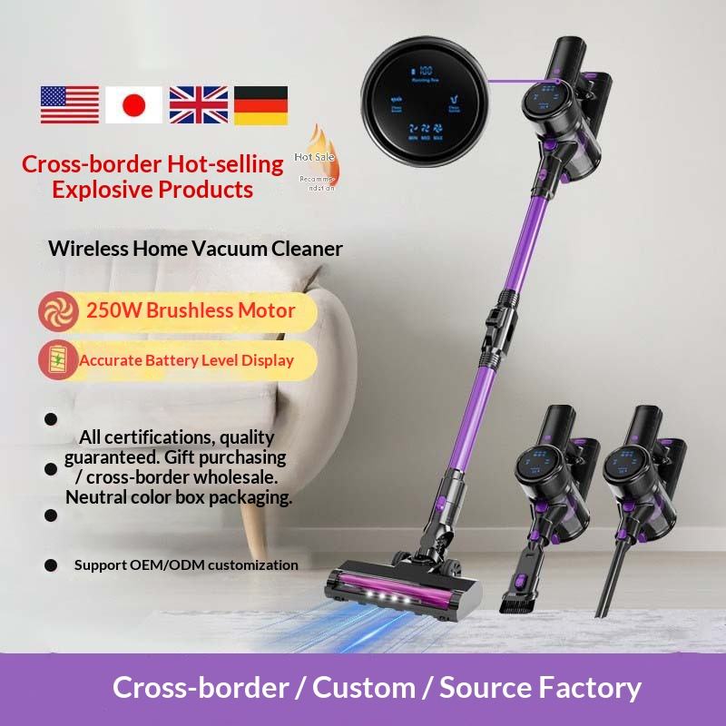 Aspirateur sans fil transfrontalier 200W sans sac avec grande puissance d'aspiration, idéal pour les tapis, conception portable, moteur sans balais et boîte à poussière