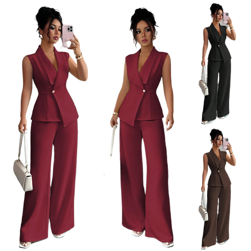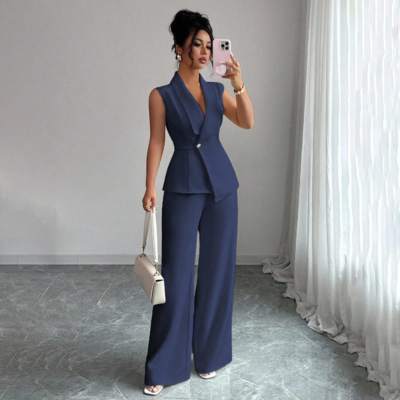 Commerce électronique transfrontalier : vêtements de mode pour femmes européennes et américaines - ensemble élégant et stylé sans manches avec pantalon droit