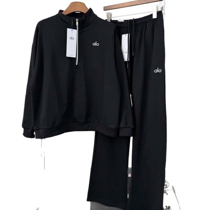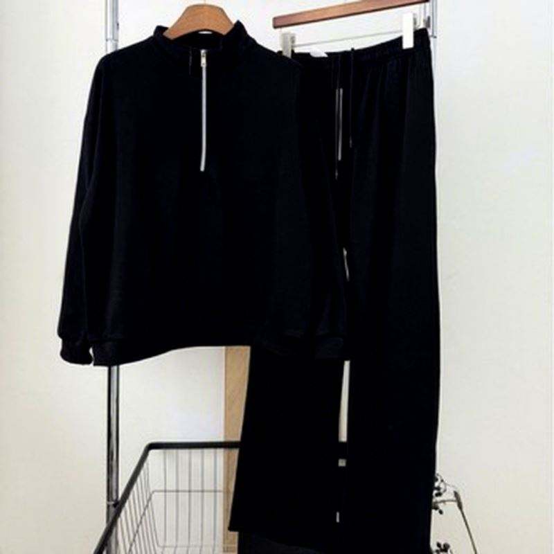 SélectionnerCouleur: Ensemble de survêtement noir avec demi-zip.