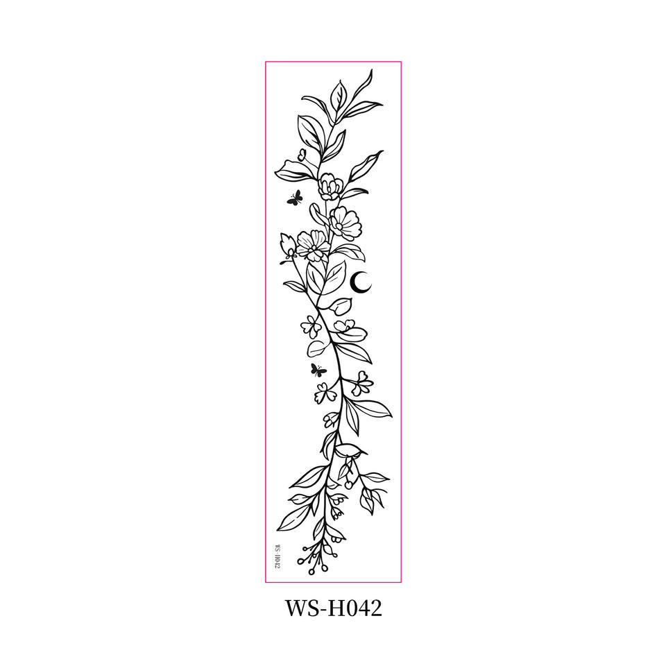 Tatouage temporaire transfrontalier imperméable motif fleur sauvage noir et blanc sexy pour clavicule et poitrine 6x23cm