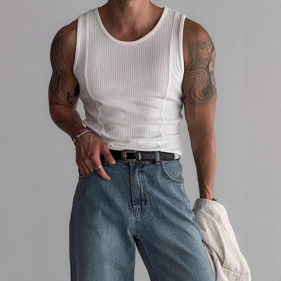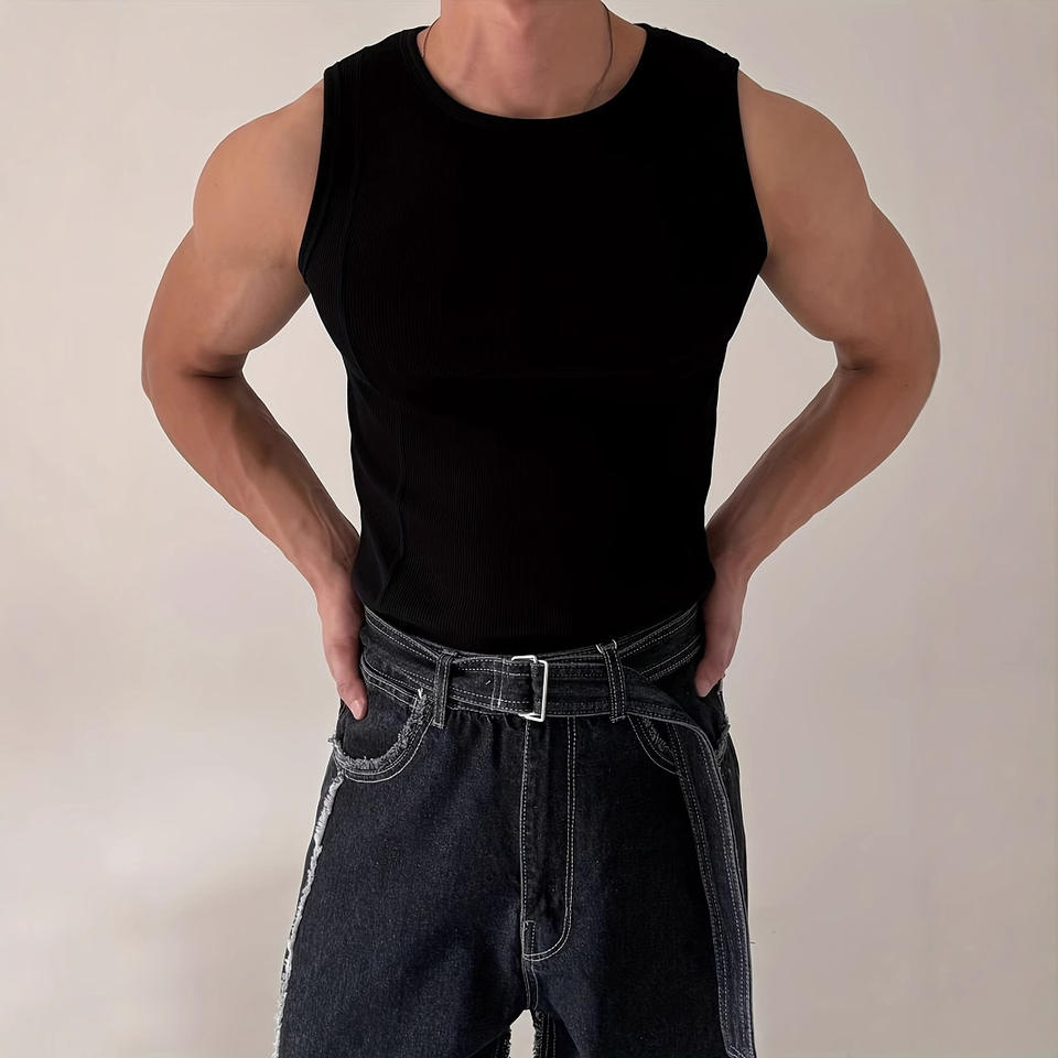 Débardeur homme tricoté rayé, coupe ajustée, style sport décontracté, épaules larges, pour le fitness et le commerce transfrontalier