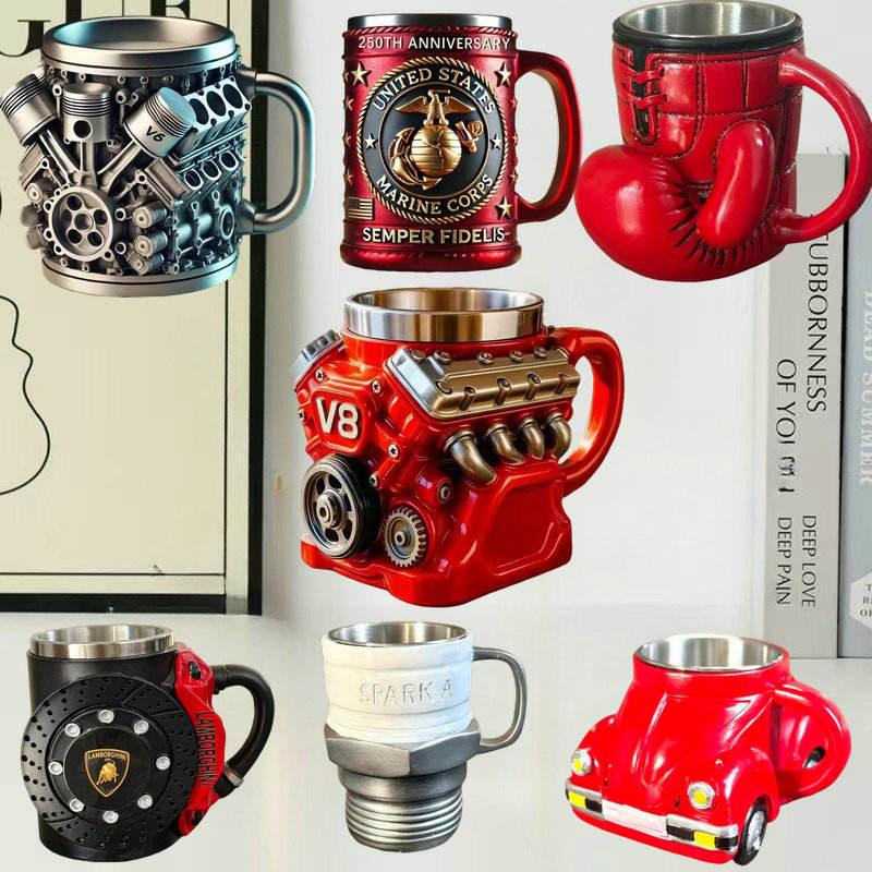 Nouveau produit transfrontalier : Tasse 3D en acier inoxydable avec moteur V8 et Tasse en résine avec moteur V6