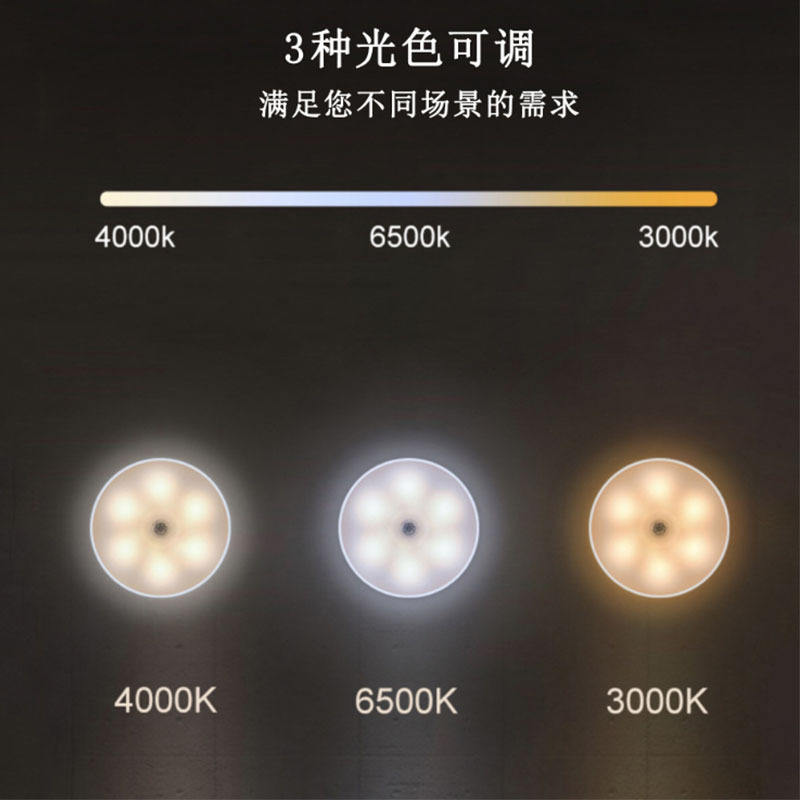 Veilleuse intelligente transfrontalière tricolore à télécommande avec capteur, pour armoires de chevet de chambre à coucher, avec chargement sans fil et variateur d'intensité.