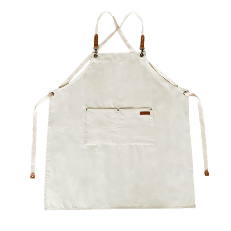 Tablier transfrontalier réglable en toile avec bretelles en PU, anti-salissures, pour la pâtisserie et usage quotidien, blanc laiteux, bleu ciel, couleur unie