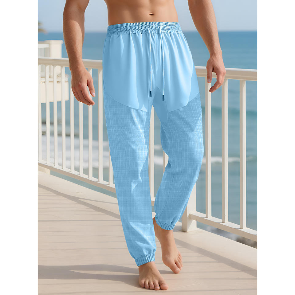 Pantalon en lin à cordon de serrage pour homme, taille élastique, fin, respirant, coupe ample, décontracté, pour usage quotidien et extérieur