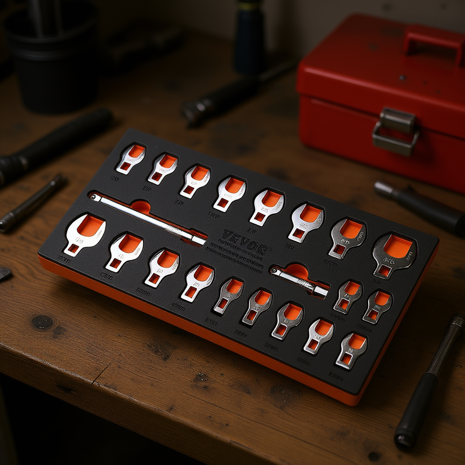Jeu de clés à fourche 3/8 pouce, 10-22 mm métriques, 20 pièces avec rallonges et organiseur EVA